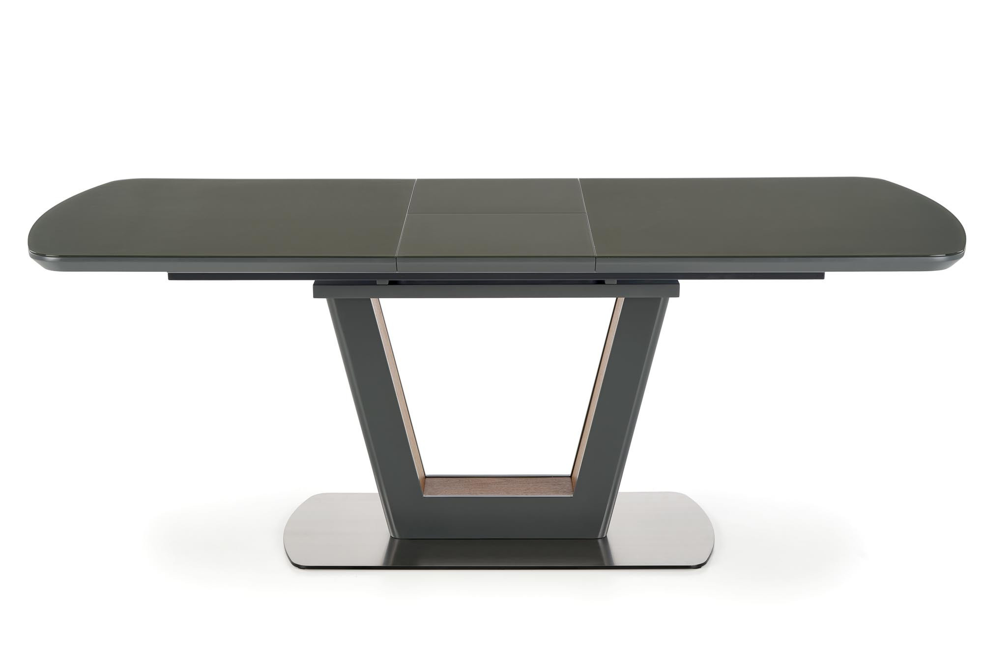 rozměry: 160÷200/90/76 cm, rozkládací stůl, materiál: sklo / lakovaná MDF / laminovaná MDF / nerezová ocel, barva: antracit mat - ořech
