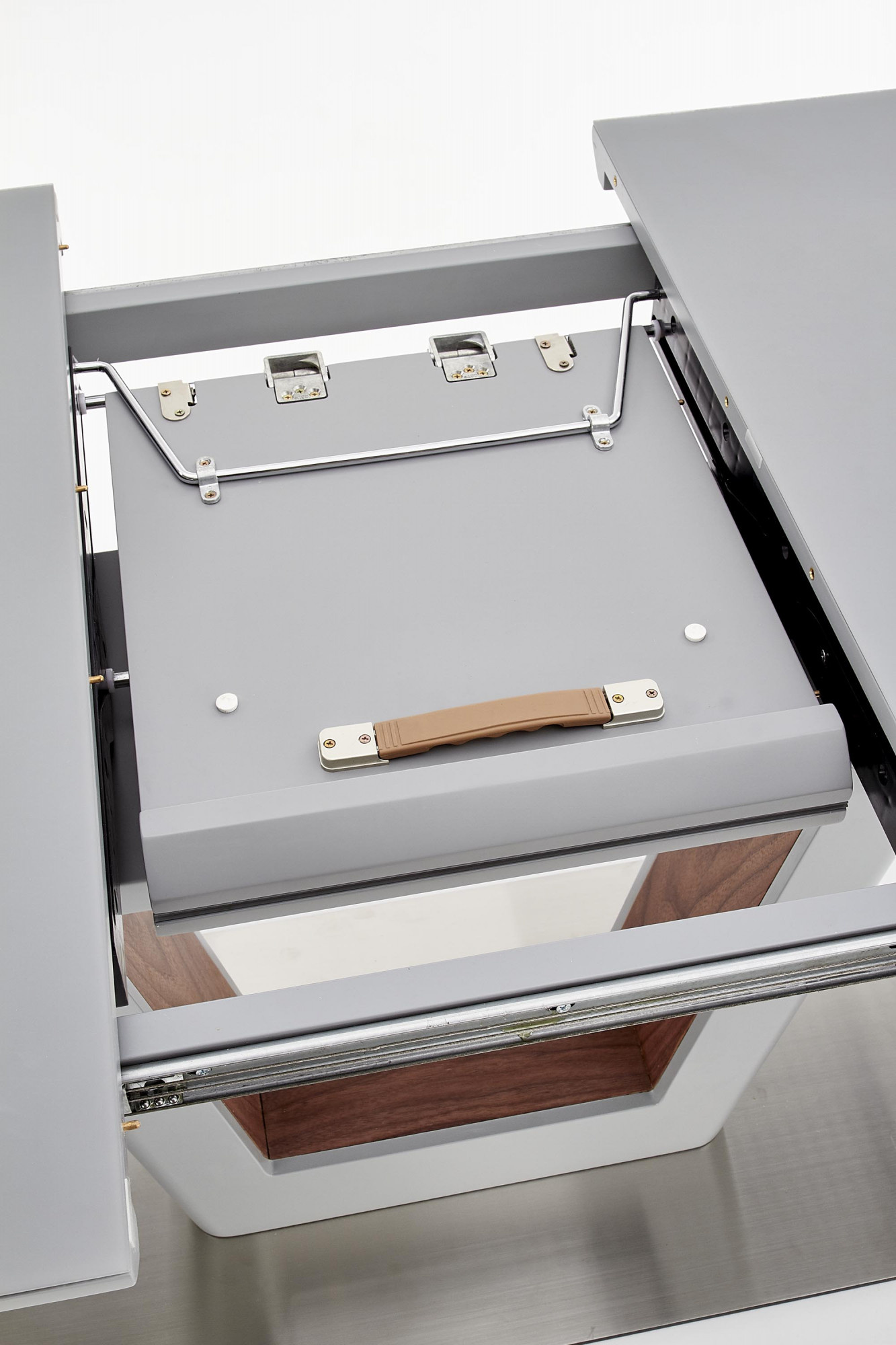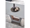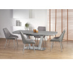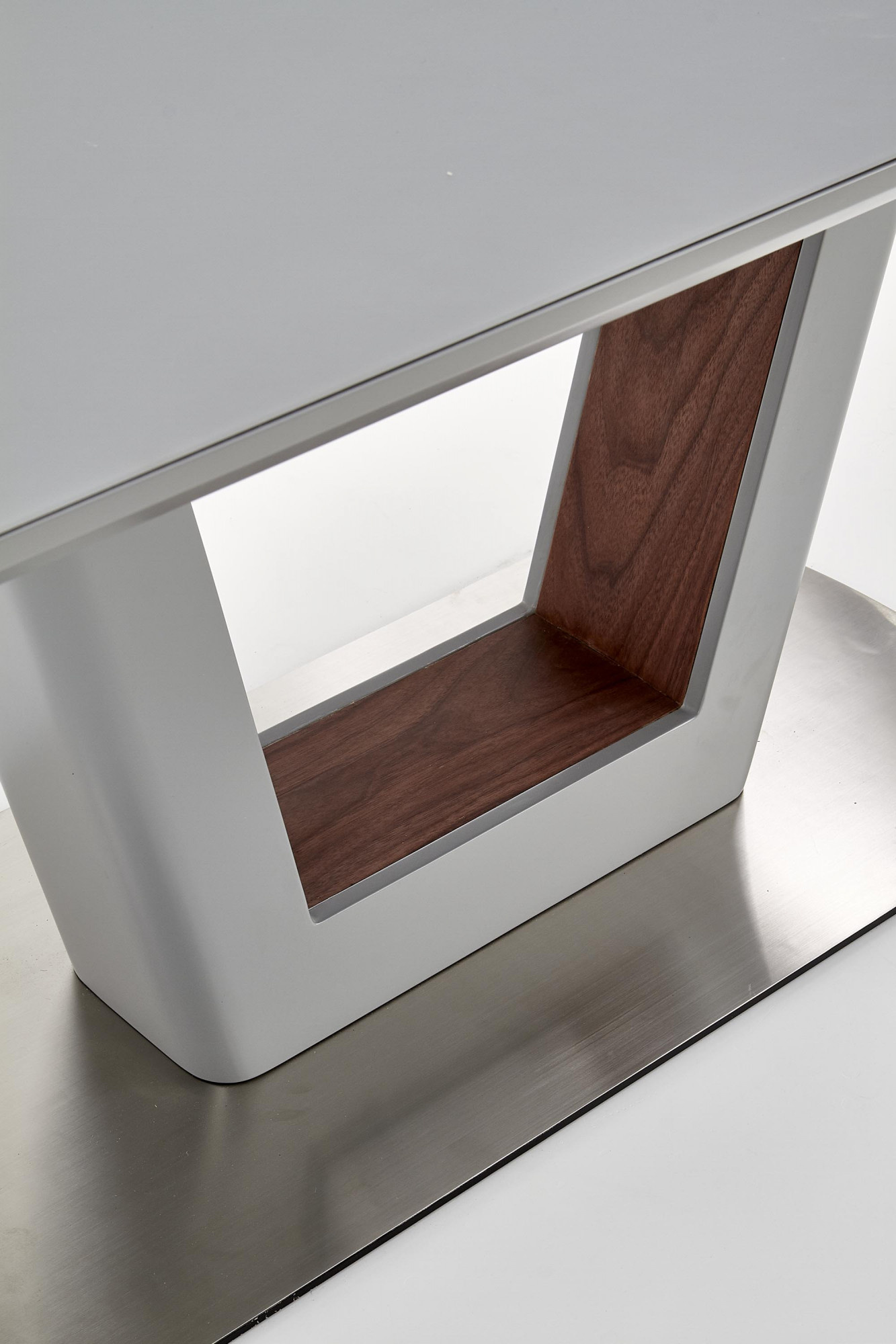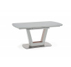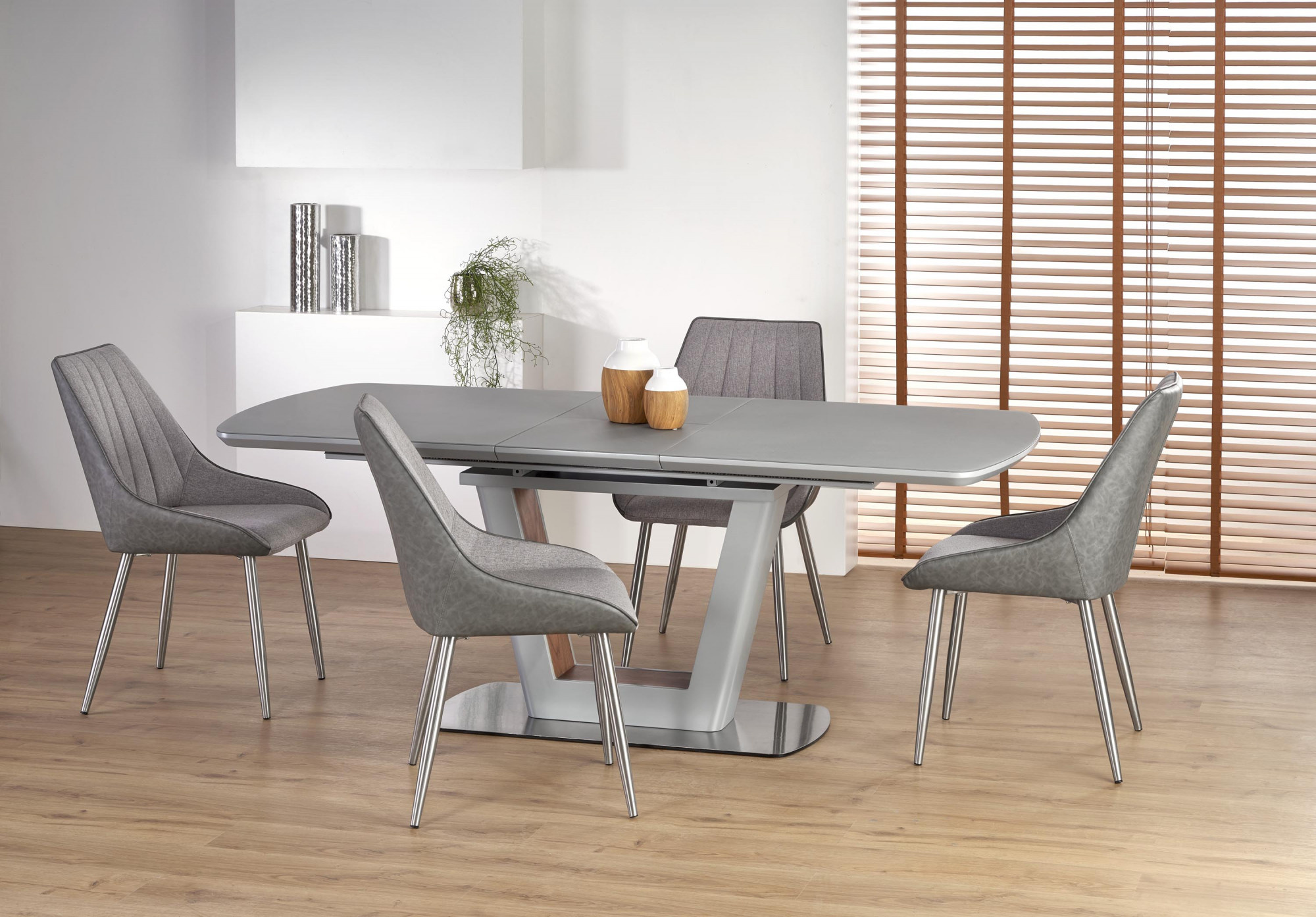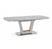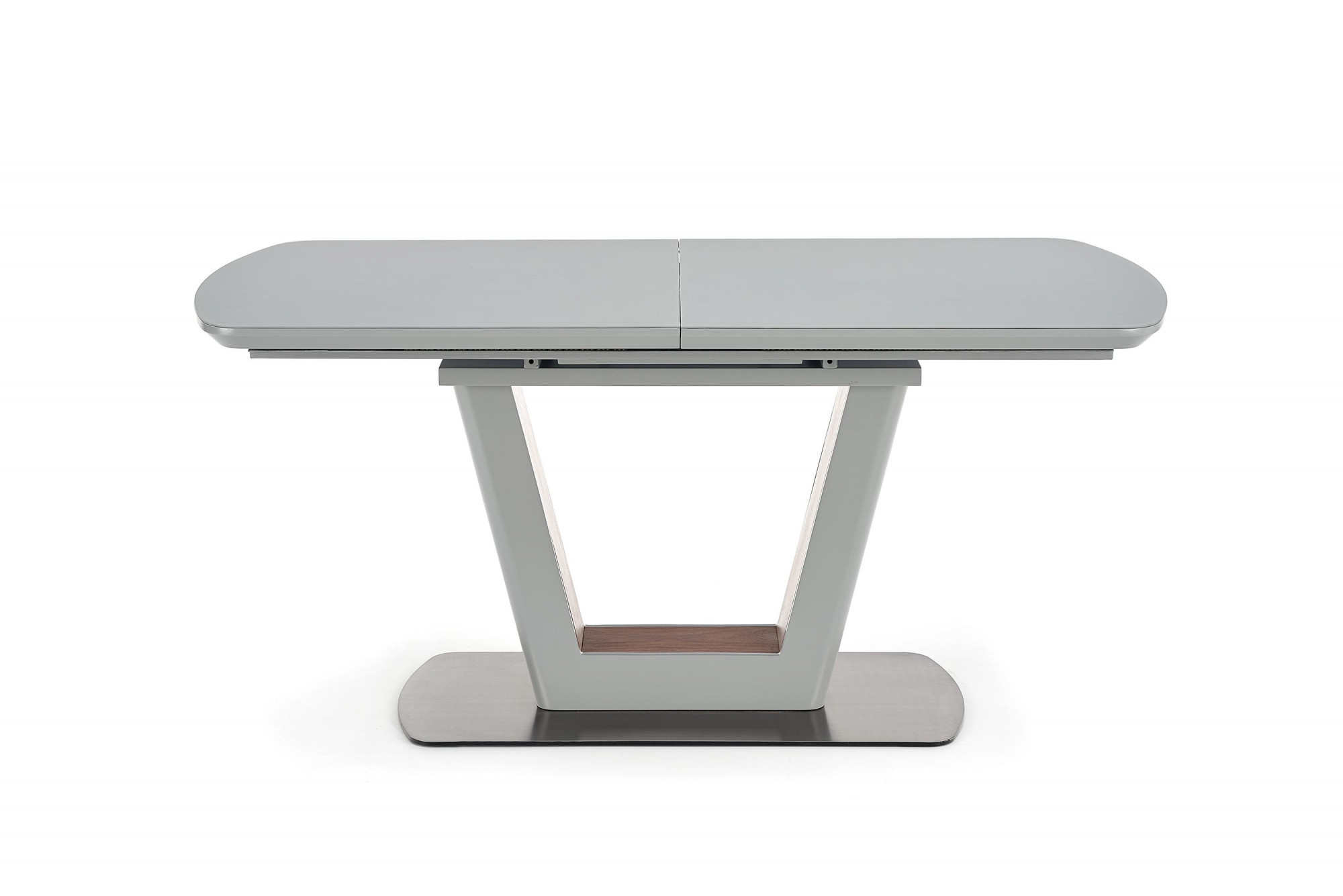 rozměry: 160÷200/90/76 cm, rozkládací stůl, materiál: sklo / lakovaná MDF / laminovaná MDF / nerezová ocel, barva: světle šedá matná - ořech.