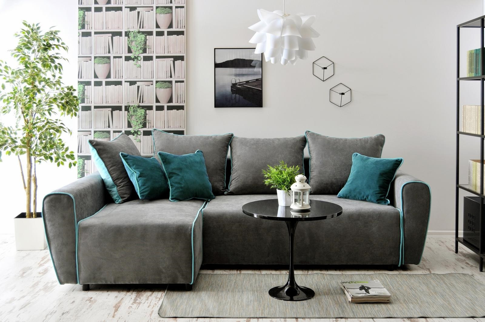 BLANKA Levá sedací souprava Orion 17šedá /Orion 12+13 tyrkysová polštářky (MRS) - kolekce "MRS"*** SUPERAKCE DO VYPRODÁNÍ
