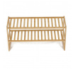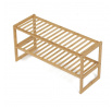 Botník s dvěma policemi je vyroben z masivního bambusu v přírodním odstínu, který přináší do interiéru svěží a teplý vzhled. Jeho otevřená konstrukce umožňuje dobré větrání obuvi a zároveň nabízí dostatek prostoru pro uložení více párů bot. Pevné bambusové lišty zajišťují stabilitu a dlouhou životnost, přičemž lehká povrchová úprava zachovává přirozenou strukturu materiálu. Kompaktní rozměry a jednoduchý design umožňují snadné umístění v předsíni nebo šatně, kde botník efektivně pomáhá udržet pořádek.