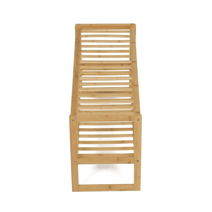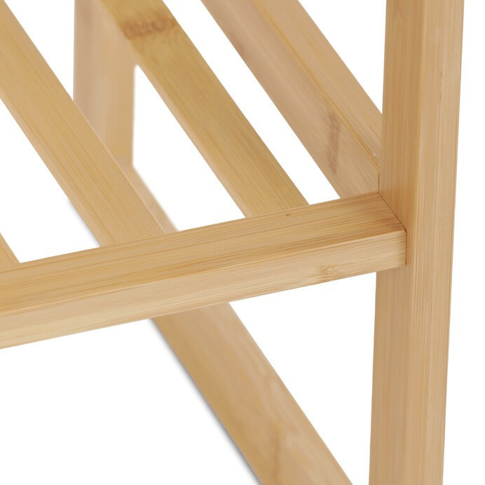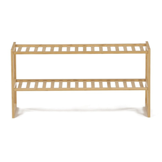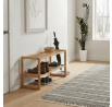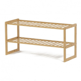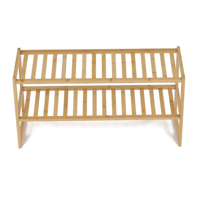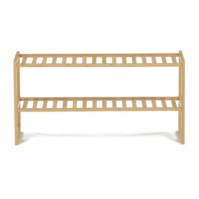 Botník s dvěma policemi je vyroben z masivního bambusu v přírodním odstínu, který přináší do interiéru svěží a teplý vzhled. Jeho otevřená konstrukce umožňuje dobré větrání obuvi a zároveň nabízí dostatek prostoru pro uložení více párů bot. Pevné bambusové lišty zajišťují stabilitu a dlouhou životnost, přičemž lehká povrchová úprava zachovává přirozenou strukturu materiálu. Kompaktní rozměry a jednoduchý design umožňují snadné umístění v předsíni nebo šatně, kde botník efektivně pomáhá udržet pořádek.