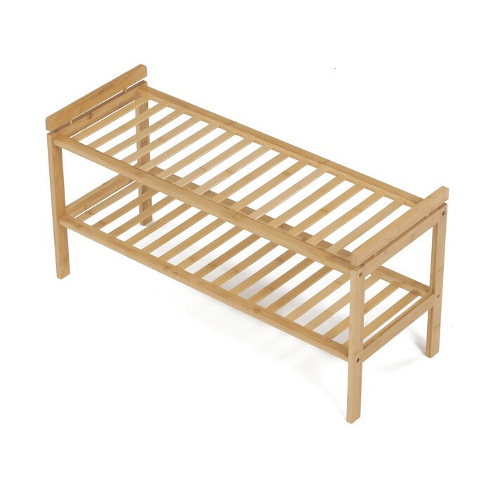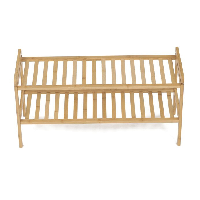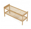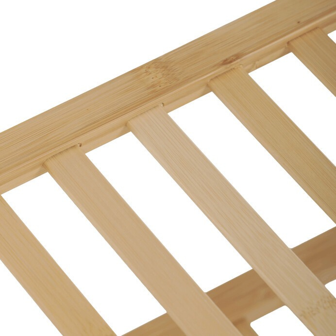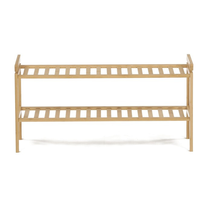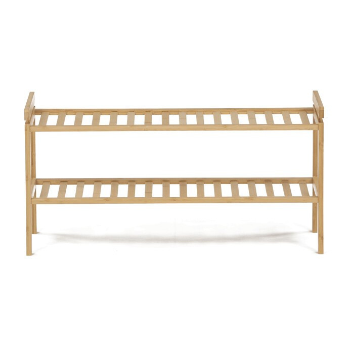 Botník s dvěma policemi je vyroben z masivního bambusu v přírodním odstínu, který zajišťuje pevnost a dlouhou životnost. Otevřená police s vodorovnými latěmi umožňuje efektivní větrání a rychlé schnutí obuvi. Jednoduchý a funkční design botníku se hodí do různých interiérů, kde nabízí praktické řešení pro uskladnění bot. Stabilní rám a rovné nohy zaručují bezpečné a pevné postavení. Rozměry botníku umožňují uložení více párů obuvi bez zbytečné náročnosti na prostor.