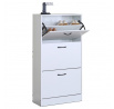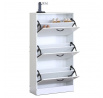 Botník s třemi přihrádkami v čistě bílém provedení je vyroben z MDF desek, které zajišťují pevnost a stabilitu. Každá přihrádka je opatřena černou úchytkou pro snadné otevírání a zavírání, což usnadňuje organizaci obuvi. Kompaktní rozměry umožňují umístění do předsíní i menších prostor, kde poskytuje praktické řešení pro uložení bot. Povrch botníku je hladký a snadno udržovatelný, což přispívá k dlouhé životnosti a čistému vzhledu. Díky jednoduchému designu se hodí do různých stylů interiéru.