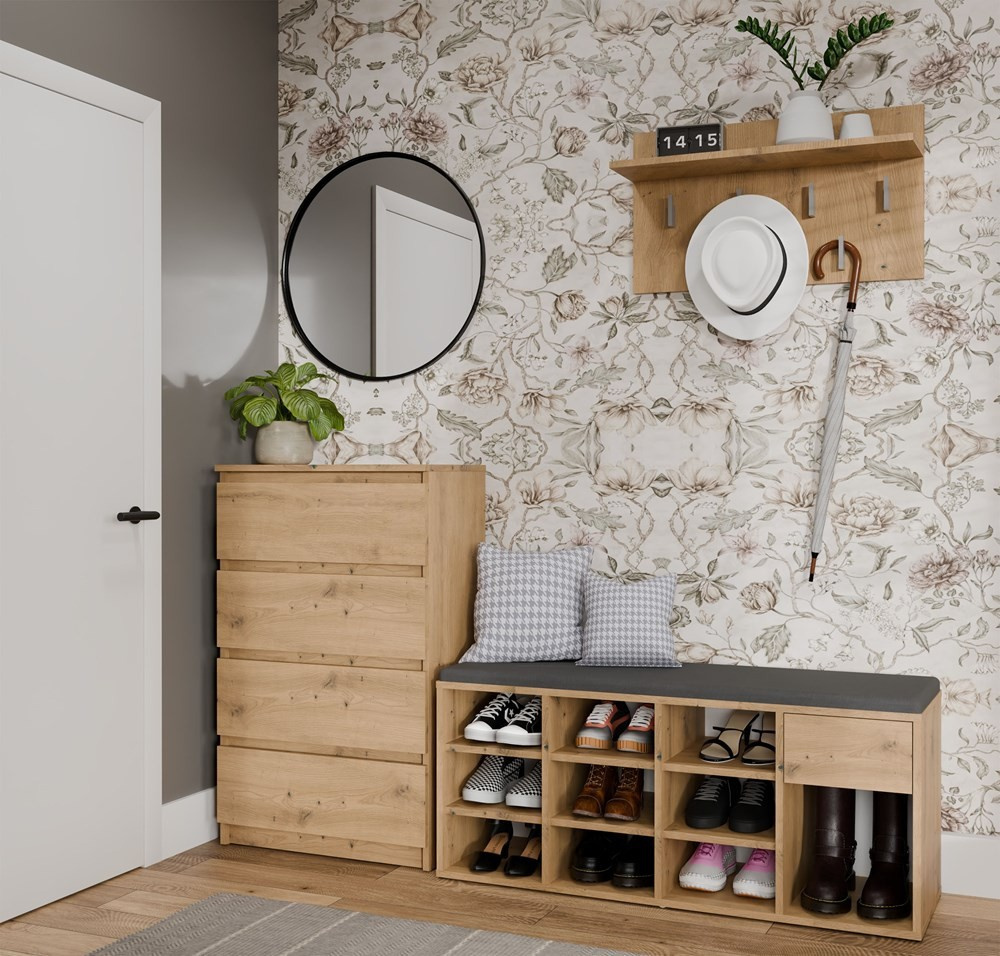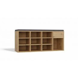 Nadčasový botník Tazin představuje praktické a stylové řešení pro každou předsíň – nabízí pohodlné sezení a zároveň dostatek úložného prostoru pro vaše boty i drobnosti. Nábytek je vyroben z odolného a snadno udržovatelného lamina.