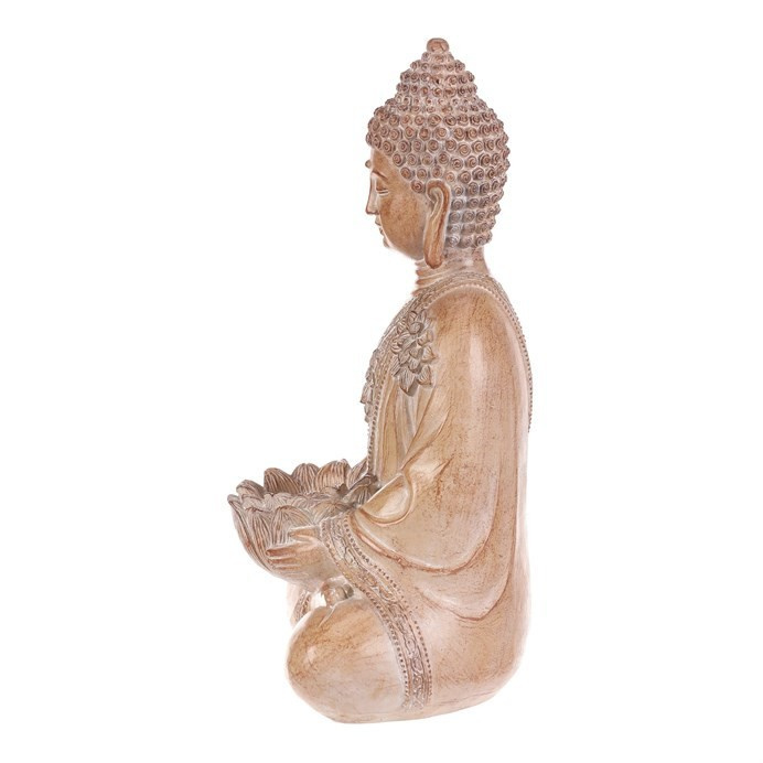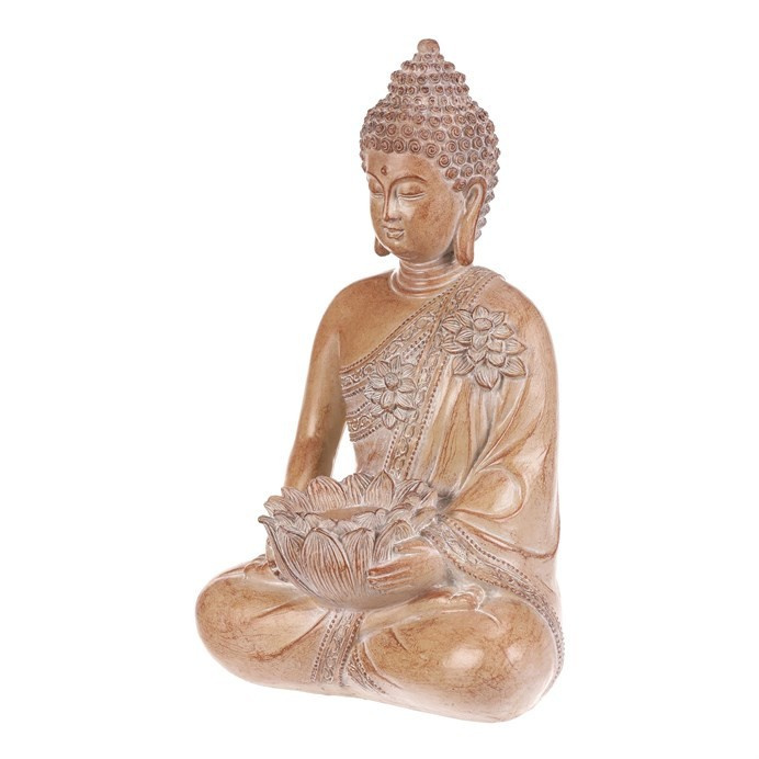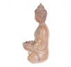 Buddha - polyresin, místo na čajovou/LED svíčku, sv. hnědý