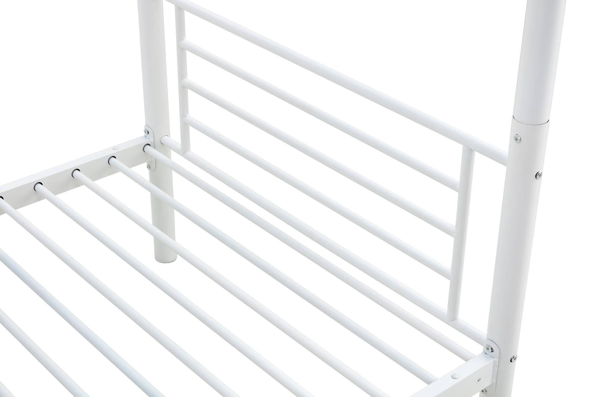Postel BUNKY 90 je vyrobena z kvalitního kovu, což zajišťuje její dlouhou životnost a stabilitu. Kovová konstrukce je nejen pevná, ale také snadno udržovatelná, což je ideální pro každodenní používání. Bílá barva dodává posteli moderní a čistý vzhled, který se hodí do jakéhokoliv interiéru.