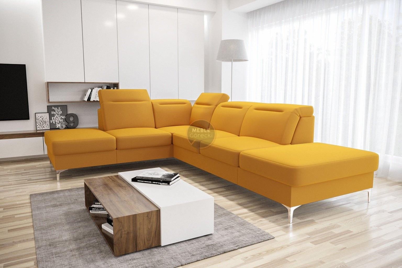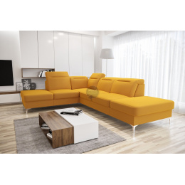 Rohová sedačka má nastavitelné, vícestupňové opěrky hlavy, chromované ozdobné nožky, sedáky s ozdobným prošíváním a především je vyrobena na vlnitých pružinách a vysoce elastické pěně, což zajišťuje vysoký komfort používání a zabraňuje deformaci nejčastěji používaných ploch. POZOR!!! Na aranžmá je zobrazen rohový gauč bez funkce spaní.