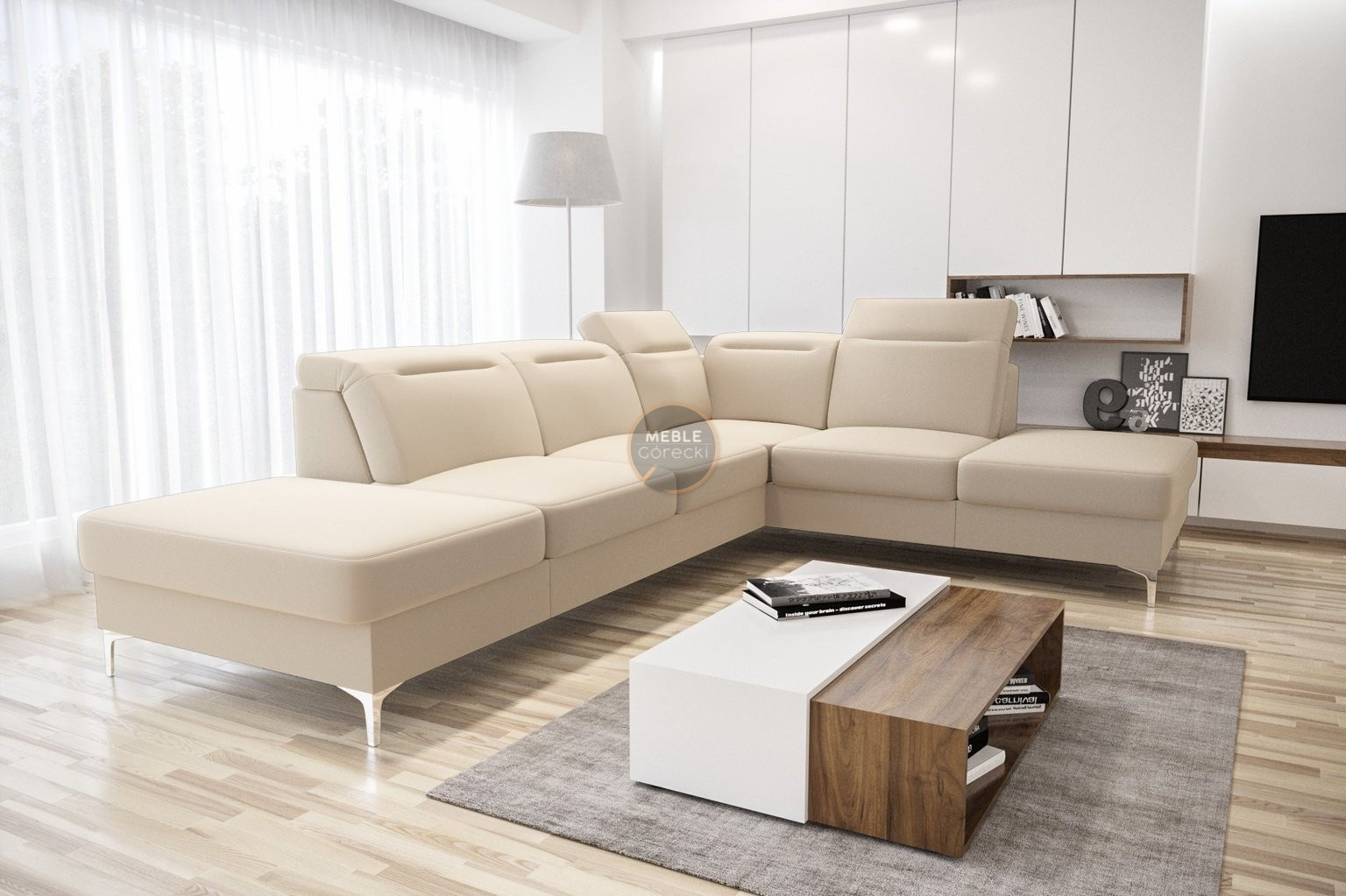 Rohová sedačka má nastavitelné, vícestupňové opěrky hlavy, chromované ozdobné nožky, sedáky s ozdobným prošíváním a především je vyrobena na vlnitých pružinách a vysoce elastické pěně, což zajišťuje vysoký komfort používání a zabraňuje deformaci nejčastěji používaných ploch. POZOR!!! Na aranžmá je zobrazen rohový gauč bez funkce spaní.