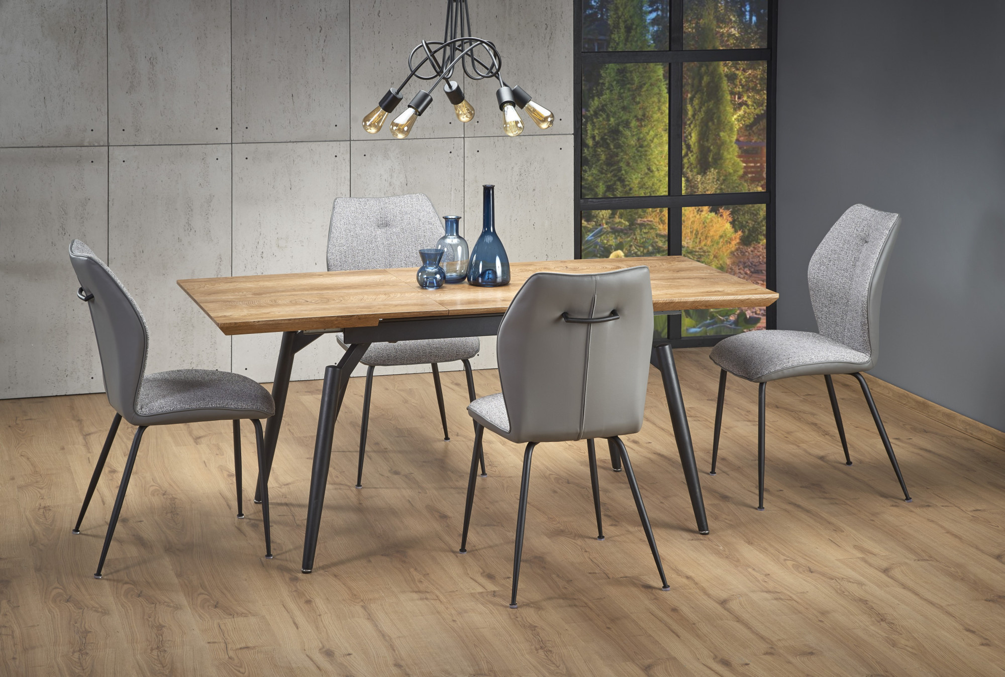 rozměry: 140-180/80/74 cm, rozkládací stůl, materiál: MDF dýha / práškově lakovaná ocel, barva: deska stolu - přírodní dub, nohy - černé