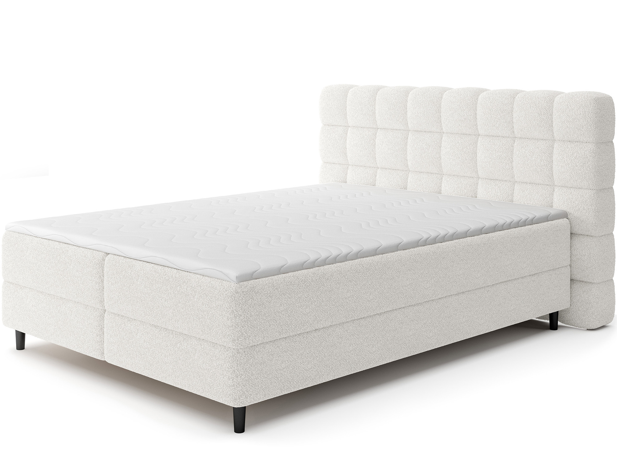 Kontinentální postel Camma kombinuje moderní design, funkčnost a vynikající spací komfort, což z ní činí ideální volbu pro elegantní a praktickou ložnici; je dostupná ve třech velikostech – 140x200 cm, 160x200 cm a 180x200 cm – a dokonale se přizpůsobí jak prostoru, tak individuálním potřebám, zatímco její pevná konstrukce s celkovou výškou 102 cm a výškou sedu 56 cm zajišťuje každodenní pohodlí; postel má hloubku 222 cm a šířka závisí na zvoleném modelu – 162 cm, 182 cm nebo 202 cm – což jí dodává stabilní a impozantní vzhled, který přidává luxusní nádech každému interiéru; čalouněná vysoce kvalitní látkou s jemným dotykem a stylově prošívaným čelem, kombinuje moderní eleganci s pohodlnou oporou pro čtení nebo relaxaci; praktický úložný box poskytuje prostor pro ložní prádlo a pomáhá udržovat ložnici uklizenou, což činí postel Camma nejen pohodlnou, ale také vysoce funkční; design je doplněn 10 cm černými dřevěnými nohami, které přidávají vizuální lehkost a usnadňují úklid pod postelí; model Camma je ideální volbou pro ty, kteří si cení moderního stylu, elegance, odolnosti a pohodlí, zajišťujícího zdravý a klidný spánek každou noc.