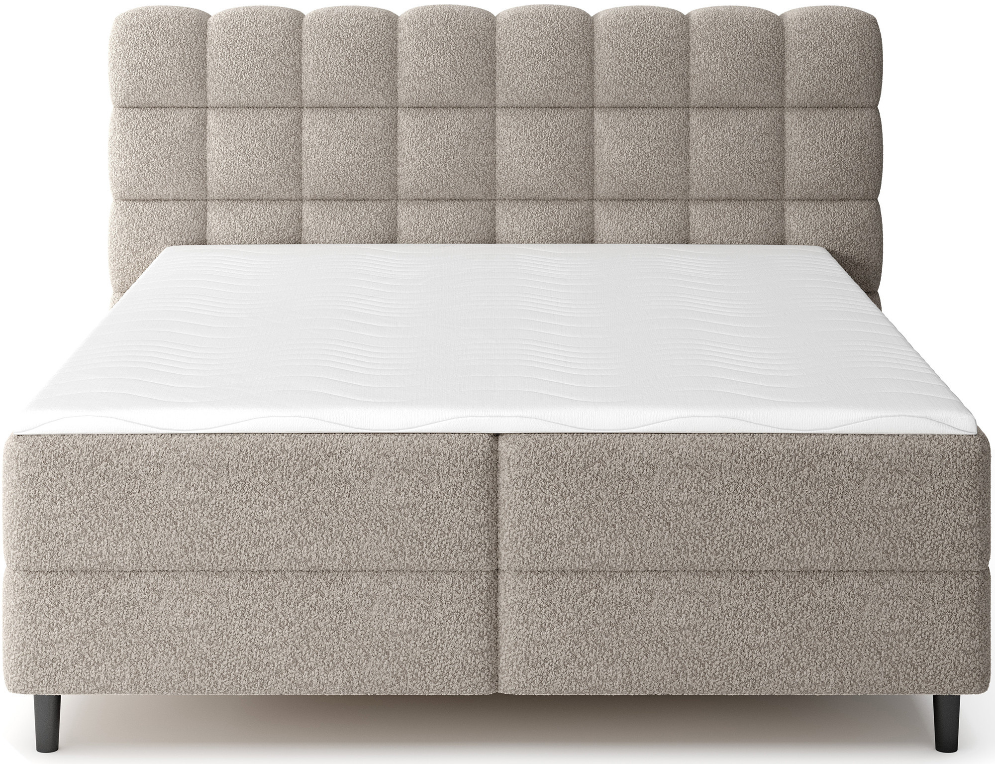 Kontinentální postel Camma kombinuje moderní design, funkčnost a vynikající spací komfort, což z ní činí ideální volbu pro elegantní a praktickou ložnici; je dostupná ve třech velikostech – 140x200 cm, 160x200 cm a 180x200 cm – a dokonale se přizpůsobí jak prostoru, tak individuálním potřebám, zatímco její pevná konstrukce s celkovou výškou 102 cm a výškou sedu 56 cm zajišťuje každodenní pohodlí; postel má hloubku 222 cm a šířka závisí na zvoleném modelu – 162 cm, 182 cm nebo 202 cm – což jí dodává stabilní a impozantní vzhled, který přidává luxusní nádech každému interiéru; čalouněná vysoce kvalitní látkou s jemným dotykem a stylově prošívaným čelem, kombinuje moderní eleganci s pohodlnou oporou pro čtení nebo relaxaci; praktický úložný box poskytuje prostor pro ložní prádlo a pomáhá udržovat ložnici uklizenou, což činí postel Camma nejen pohodlnou, ale také vysoce funkční; design je doplněn 10 cm černými dřevěnými nohami, které přidávají vizuální lehkost a usnadňují úklid pod postelí; model Camma je ideální volbou pro ty, kteří si cení moderního stylu, elegance, odolnosti a pohodlí, zajišťujícího zdravý a klidný spánek každou noc.