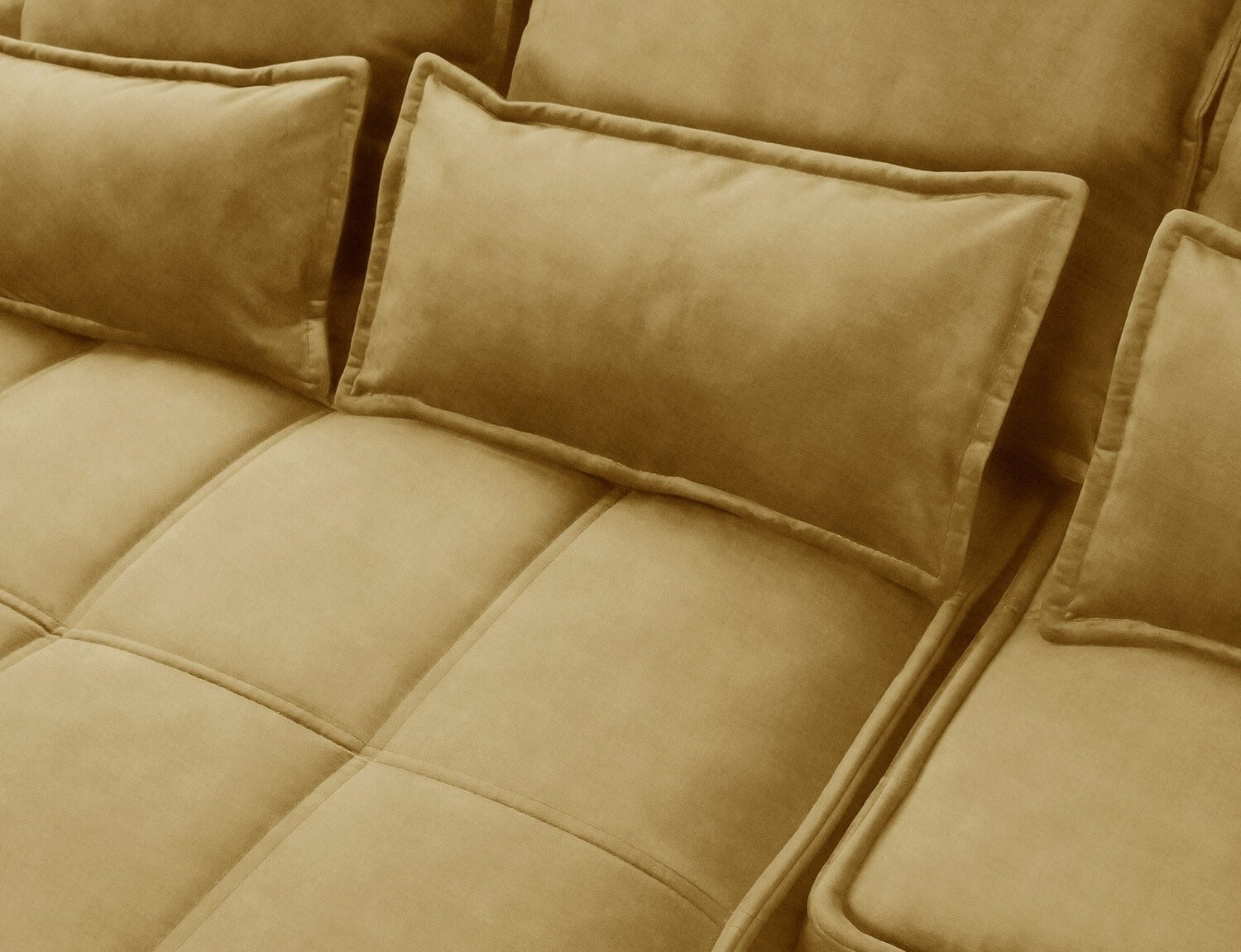 Rohová pohovka Campo, měřící 265x196x88 cm, je elegantní a funkční kus nábytku s úložným prostorem na ložní prádlo (97x60x15 cm). Vybaveno 4 polštáři na opěradlo a 4 bederními polštáři, poskytuje pohodlí a oporu pro záda. Produkt je dostupný pouze ve vybraných látkách z kolekce ELTAP. Rohová pohovka Campo je vynikající volbou pro ty, kteří si cení pohodlí, funkčnosti a elegantního designu. Díky svému promyšlenému designu a dalším polštářům nabízí pohodlné místo k odpočinku a úložný prostor pomáhá udržovat věci uspořádané. Možnost výběru z vybraných látek umožňuje vytvořit kus nábytku, který dokonale doplňuje zbytek interiéru.