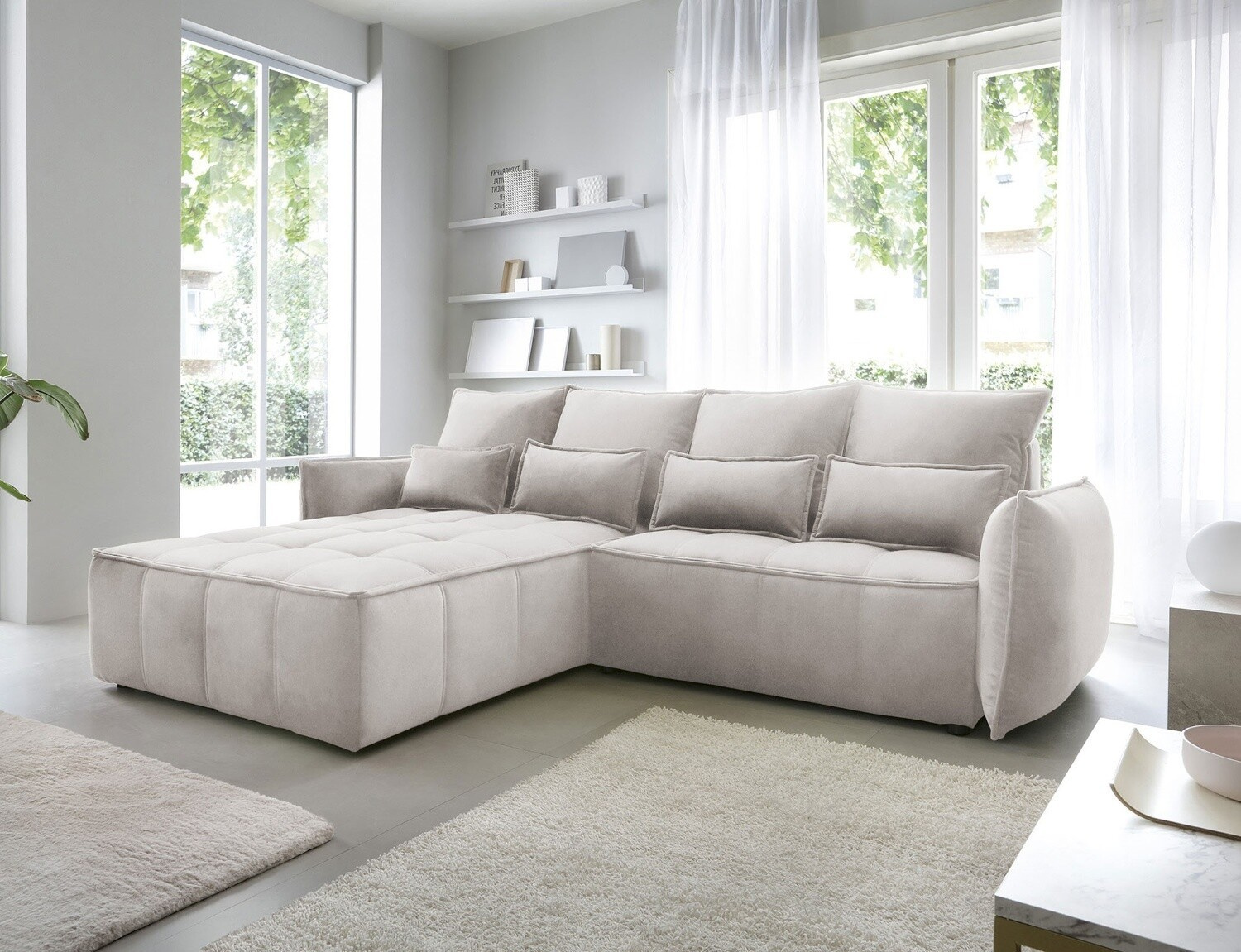 Rohová pohovka Campo, měřící 265x196x88 cm, je elegantní a funkční kus nábytku s úložným prostorem na ložní prádlo (97x60x15 cm). Vybaveno 4 polštáři na opěradlo a 4 bederními polštáři, poskytuje pohodlí a oporu pro záda. Produkt je dostupný pouze ve vybraných látkách z kolekce ELTAP. Rohová pohovka Campo je vynikající volbou pro ty, kteří si cení pohodlí, funkčnosti a elegantního designu. Díky svému promyšlenému designu a dalším polštářům nabízí pohodlné místo k odpočinku a úložný prostor pomáhá udržovat věci uspořádané. Možnost výběru z vybraných látek umožňuje vytvořit kus nábytku, který dokonale doplňuje zbytek interiéru.