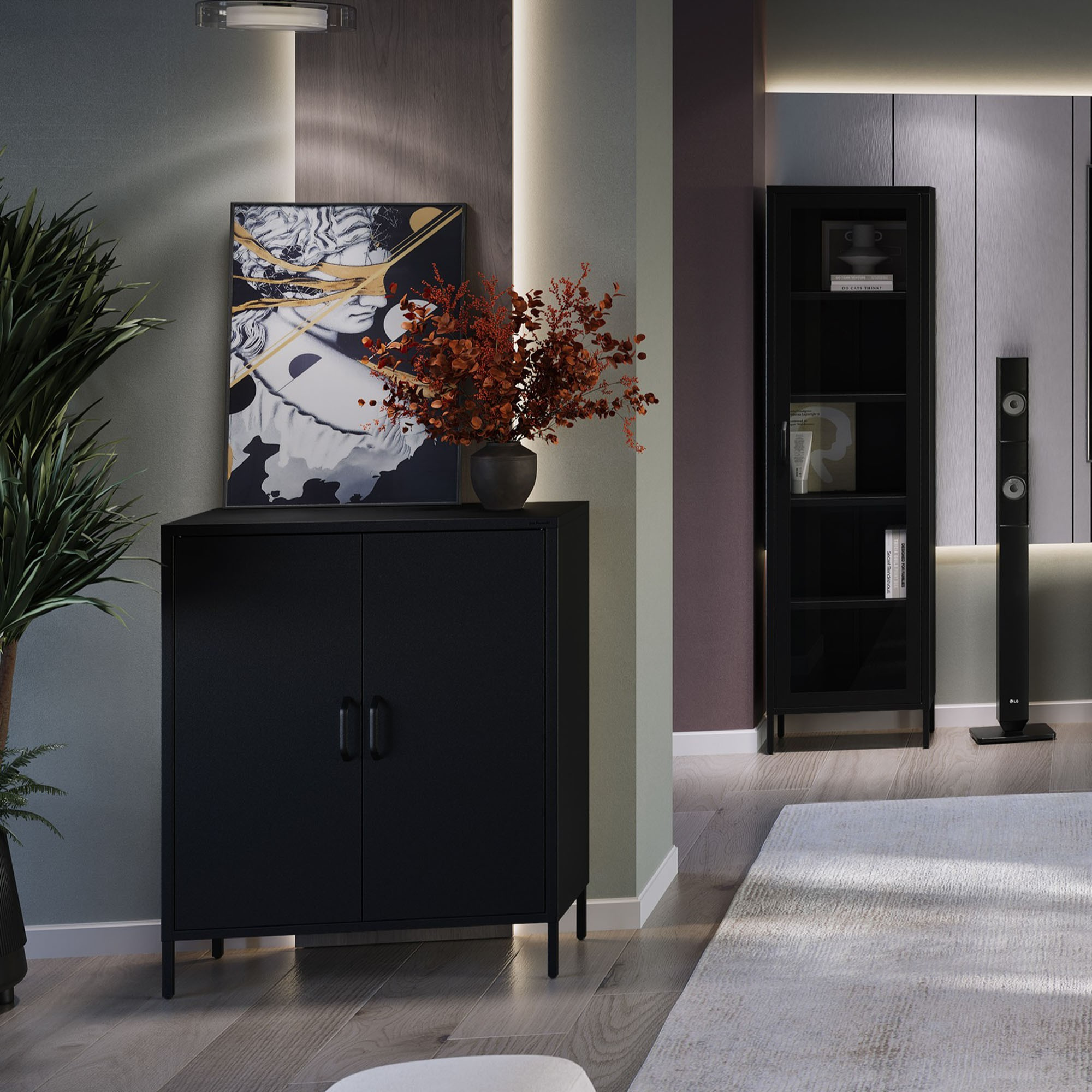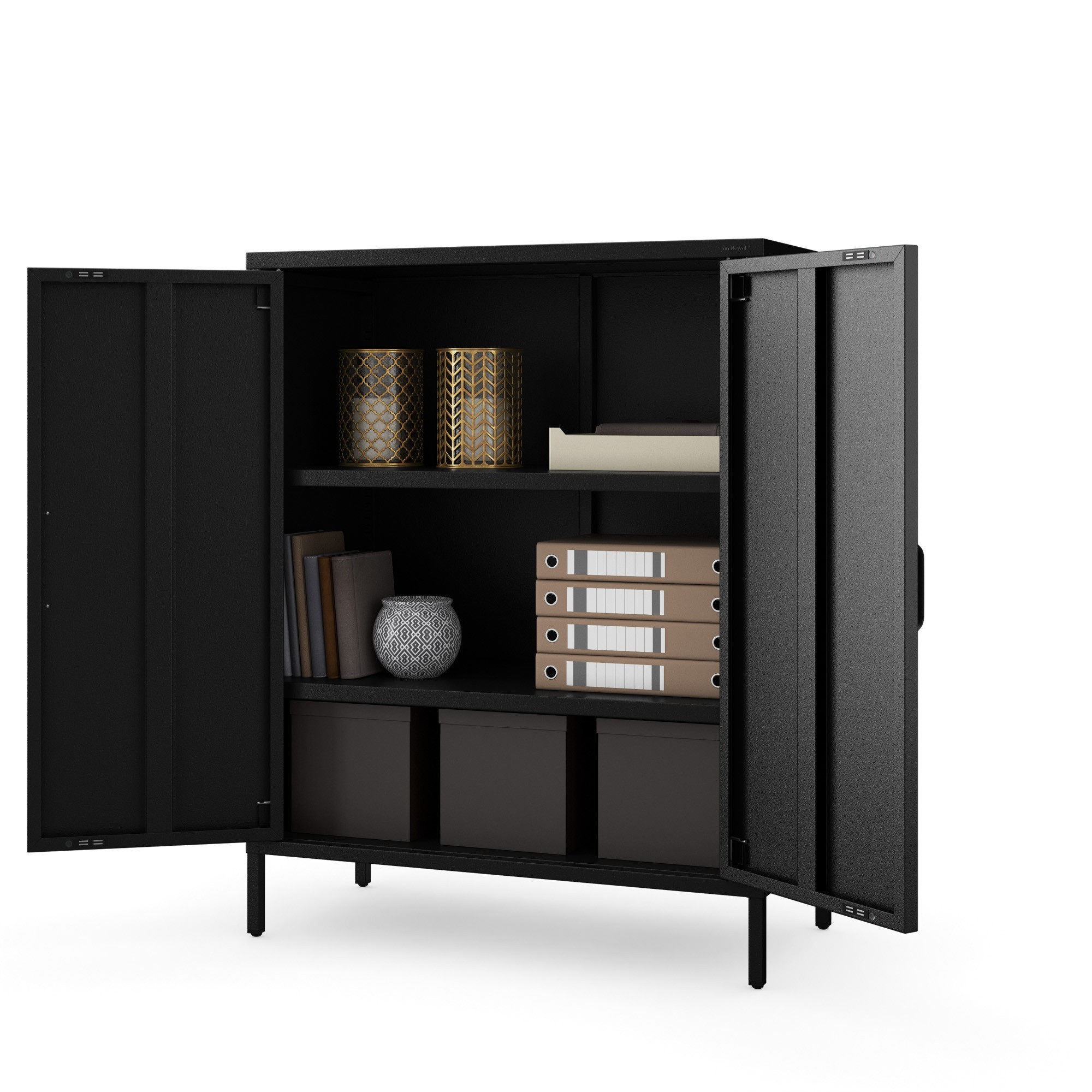 Černá skříňka s policemi na kovových nožkách VITO Modern 800 x 1015 x 400 mm