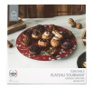 Otočná tác s vánočním motivem byla vyrobena ze skla s vánočním potiskem. Nožka podnosu z kovu je otočná, díky čemuž můžeme otáčet podnos a vybrat si pochoutky, které se na něm nacházejí. Tác je třeba mýt ručně, není vhodný do myčky, není vhodný do trouby ani do mikrovlnné trouby.