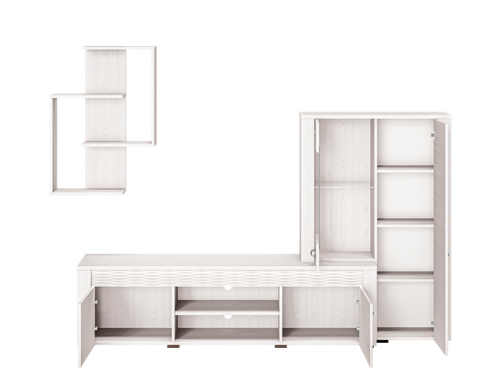 CLERMONT 15 je moderní nástěnná skříňka do obývacího pokoje. Nástěnná skříňka v kombinaci s vitrínou a nástěnnou policí je sestava, která se bude dobře vyjímat v každé domácnosti. Spodní police umožňují přehledné uložení dekodérů a přehrávačů, vitrína umožňuje vystavit oblíbené předměty a uzavřené police jsou skvělým místem pro ukrytí oblečení nebo bytového textilu.