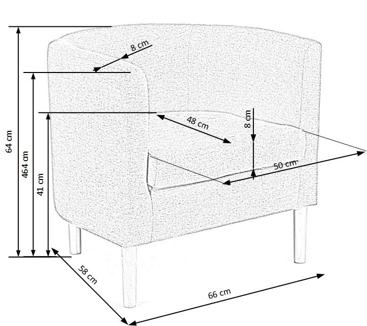rozměry: 66/58/64/41 cm, materiál: látka / masivní dřevo, barva: čalounění - šedá, nohy - přírodní