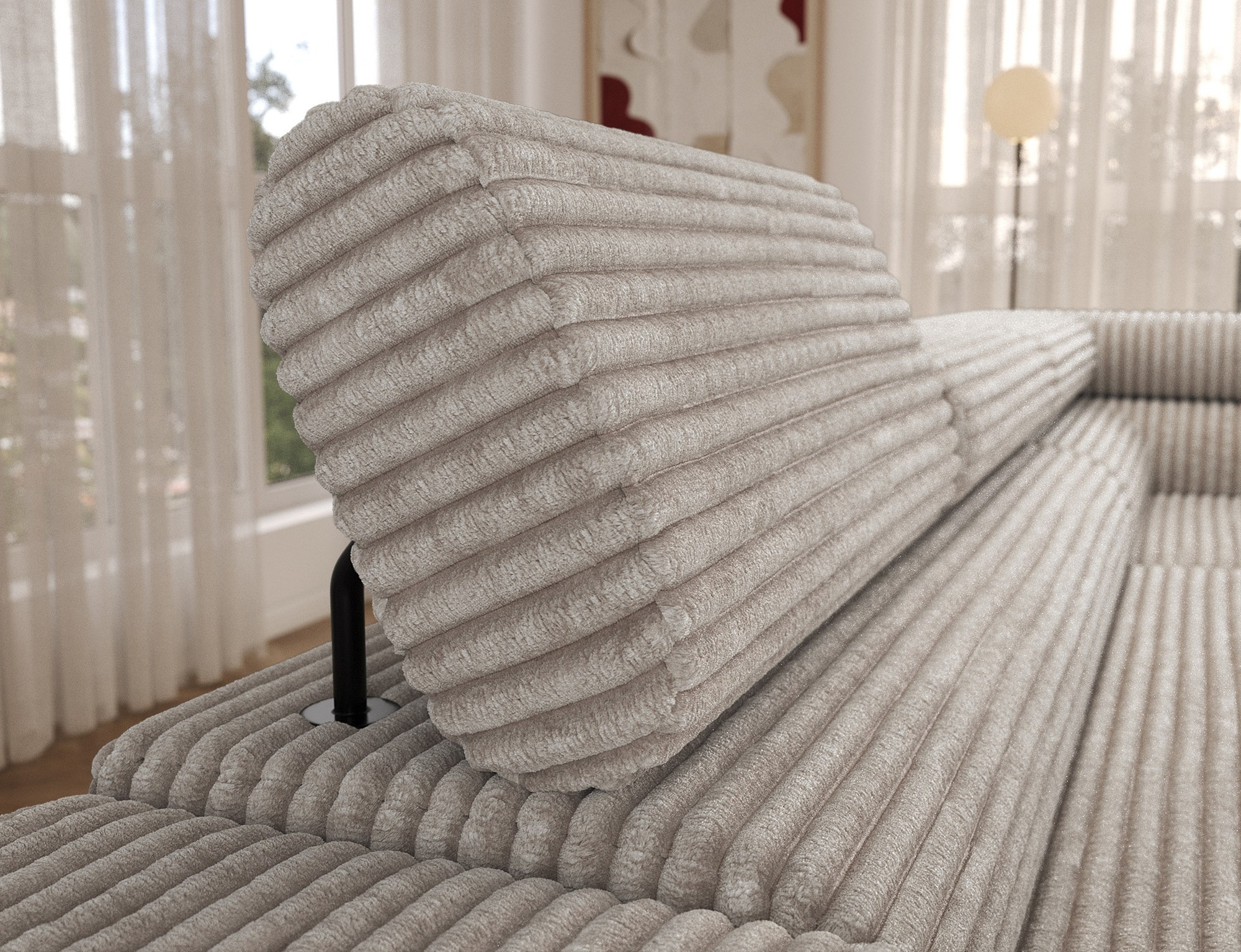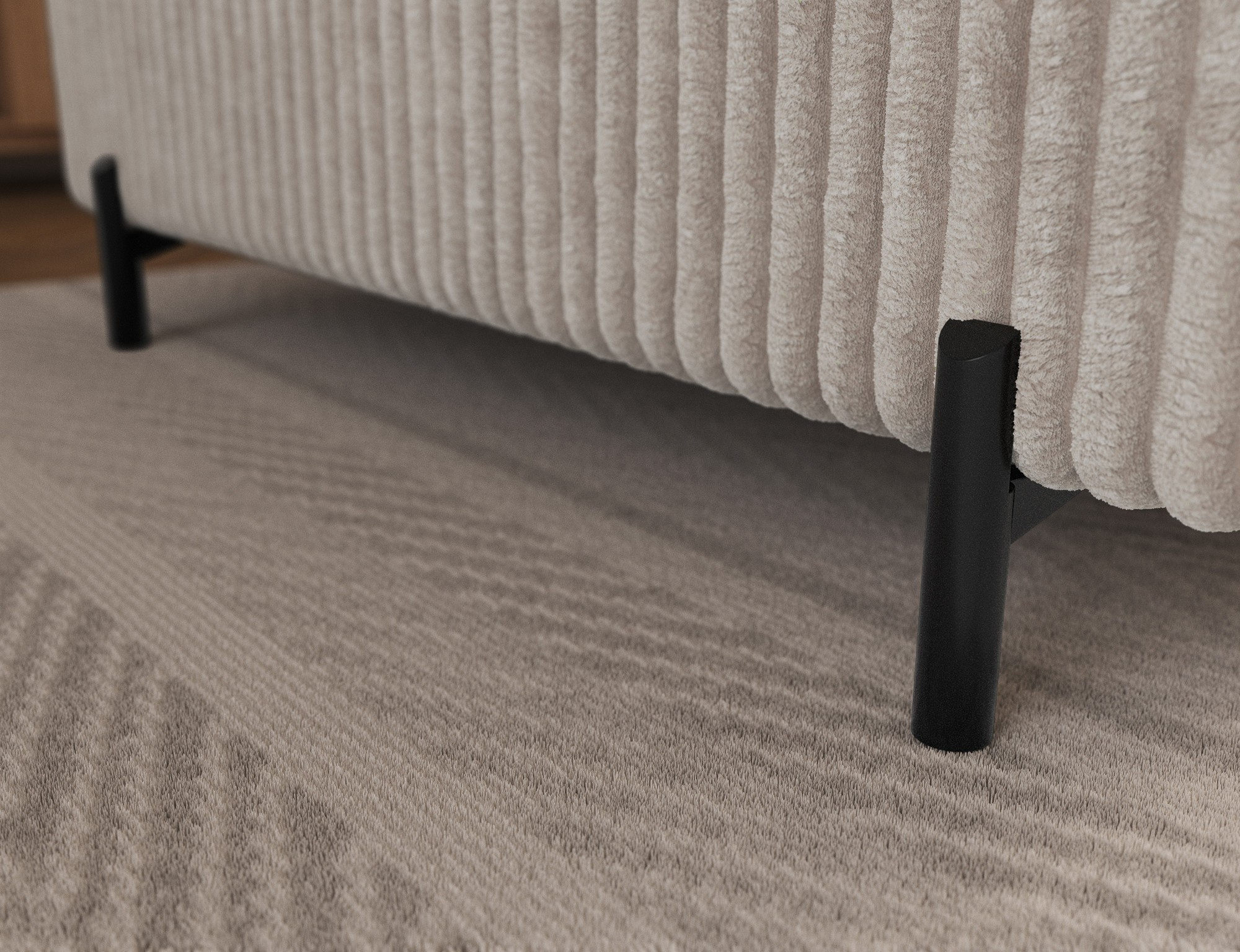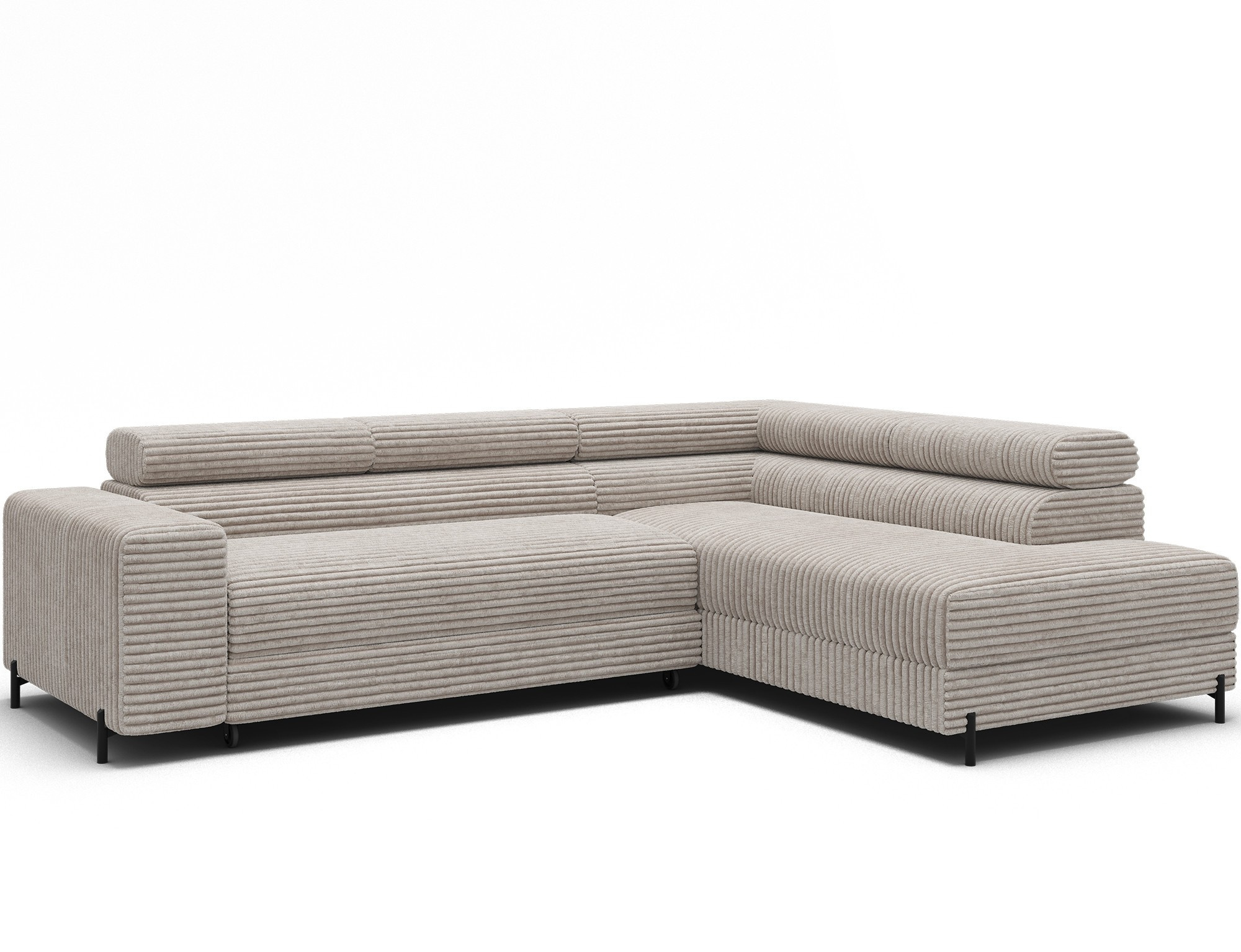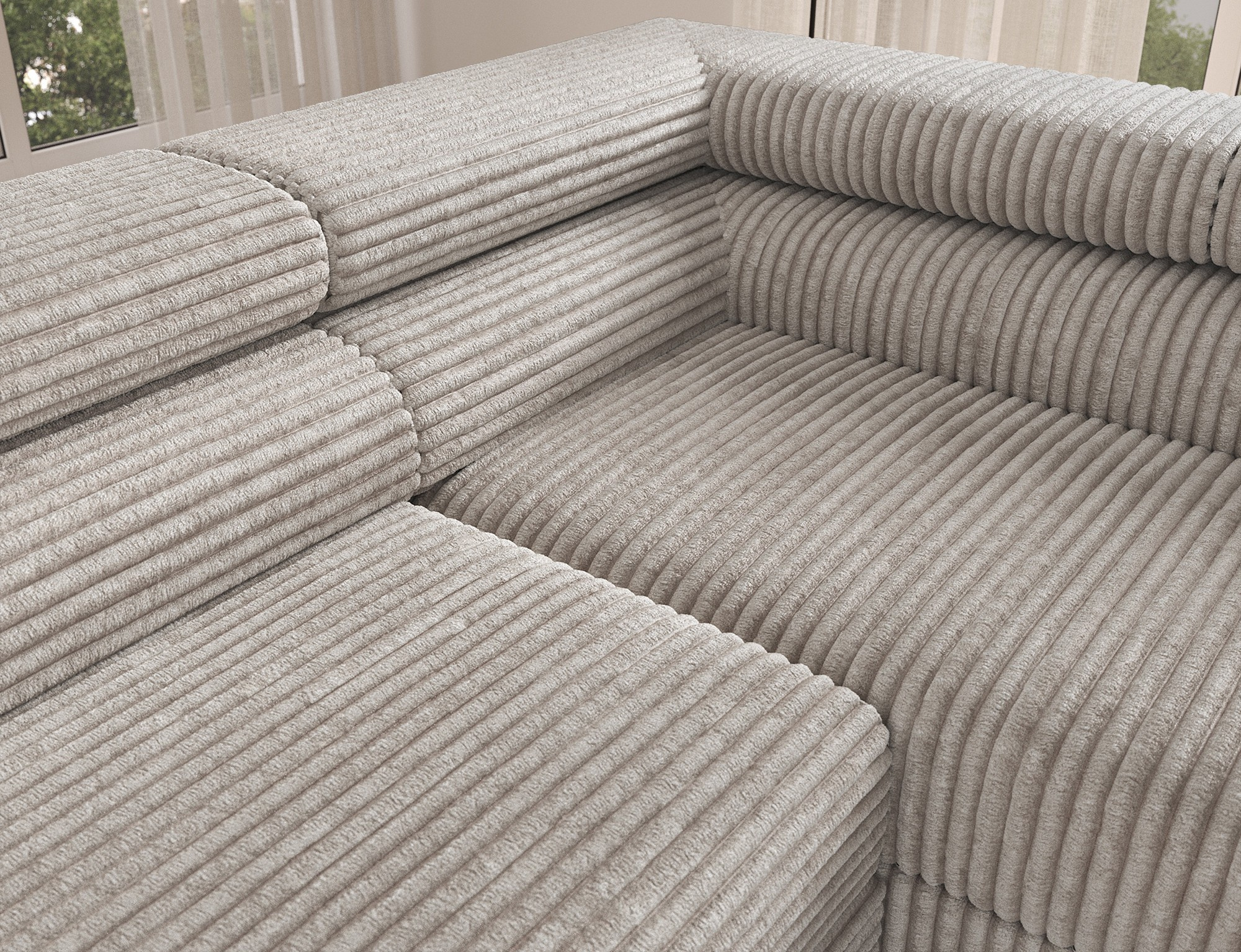 The Colesio corner sofa is a modern and elegant lounge piece with a distinctive, geometric form that perfectly combines design and functionality, making it an ideal addition to a spacious living room. The model, measuring 274 x 200 x 93 cm and weighing 144.5 kg, stands out with its solid construction and carefully refined details that ensure high comfort for everyday use. The seat is equipped with a B-type wave spring and a combination of T3030 foam (6 cm) and HR3030 foam (4 cm), guaranteeing optimal elasticity, resistance to deformation, and comfort even during intensive use. The backrest, filled with profiled T2130 polyurethane foam approximately 8 cm thick, provides stable and ergonomic back support. The Colesio corner sofa features a practical sleeping function with a surface of 124 x 203 cm, and the Delfin mechanism allows for quick and convenient unfolding. An additional advantage is the spacious bedding container measuring 180 × 92 × 17 cm, which facilitates textile storage, making the Colesio corner sofa an excellent choice for those seeking a modern corner sofa with a sleeping function, bedding storage, and durable, comfortable filling for everyday relaxation.