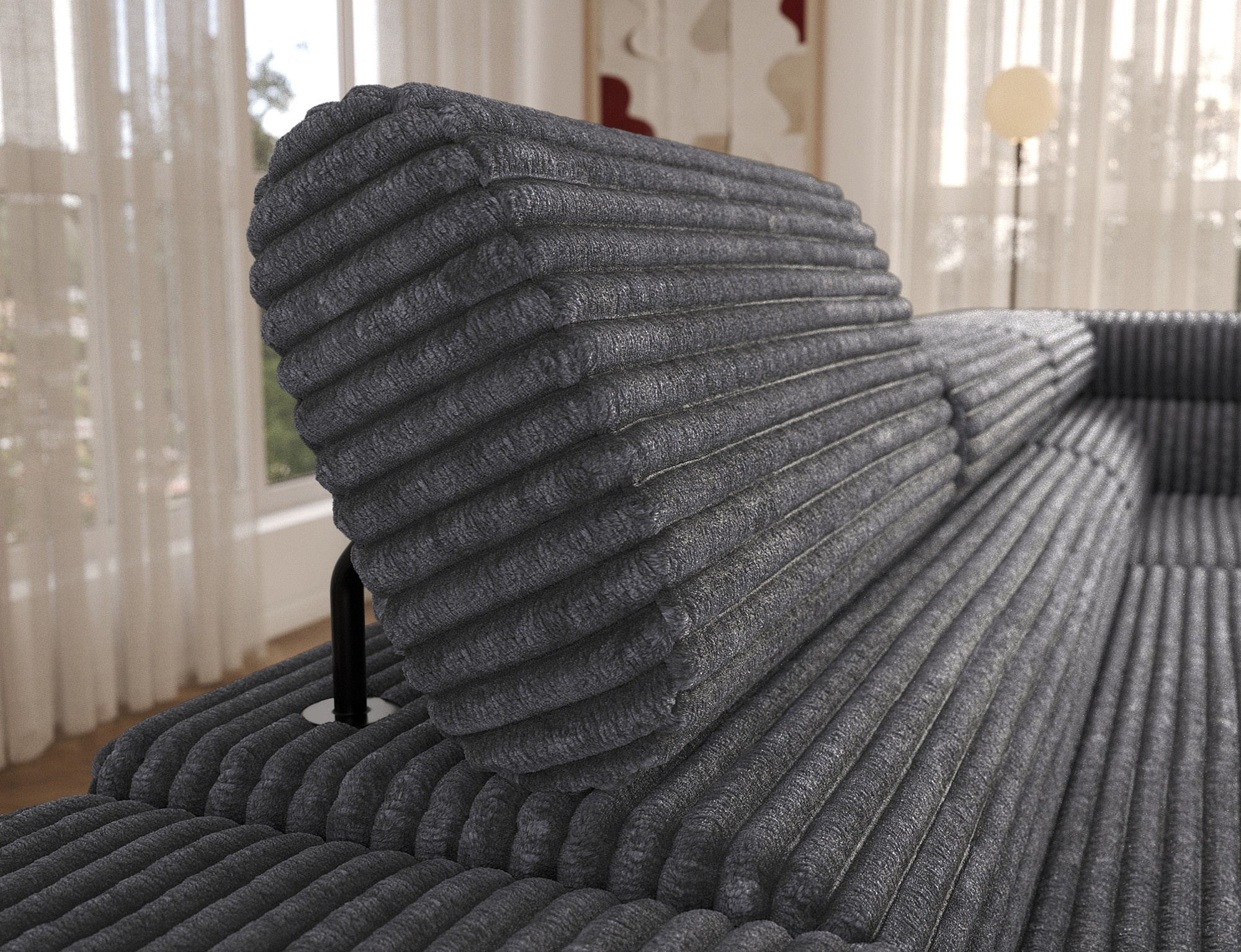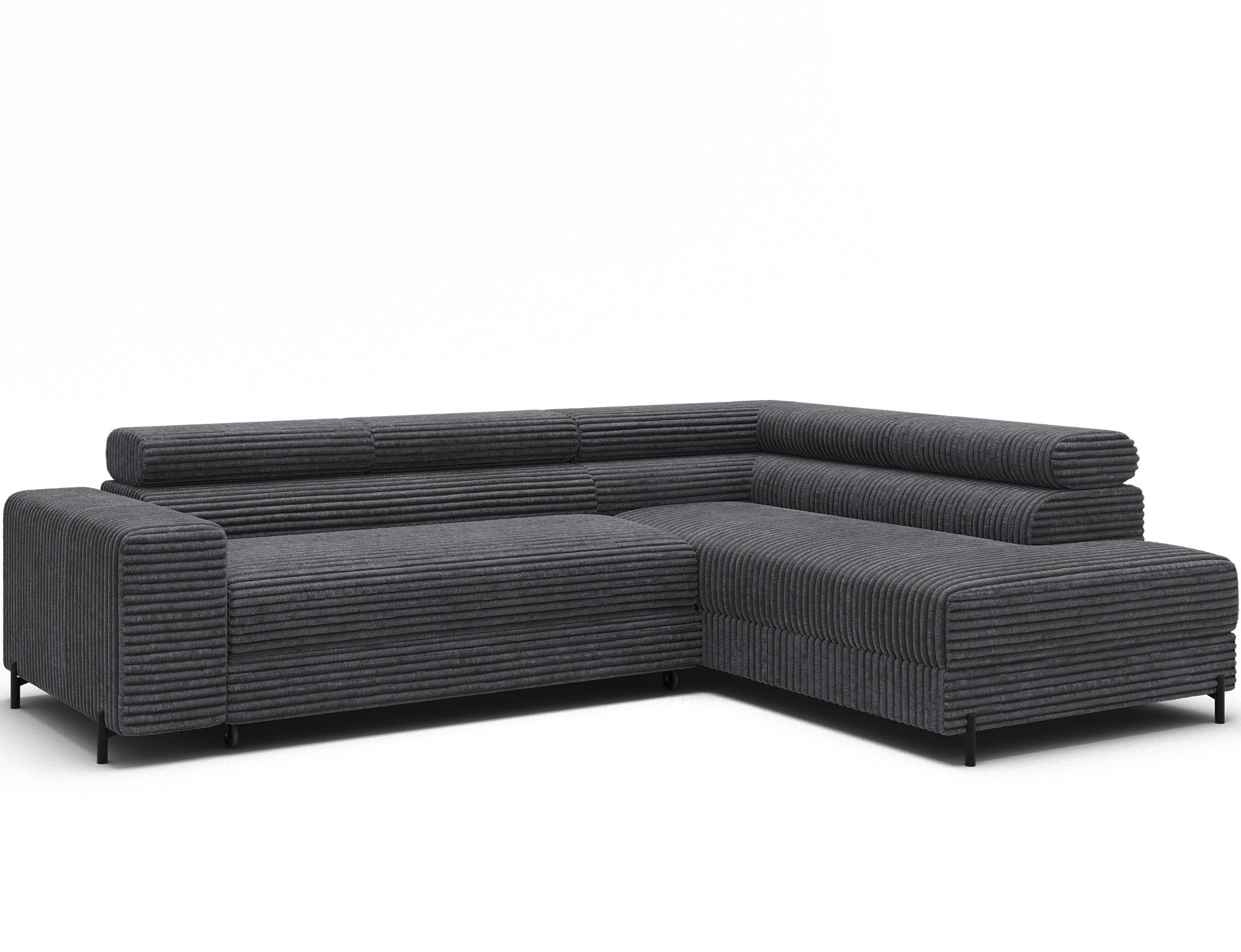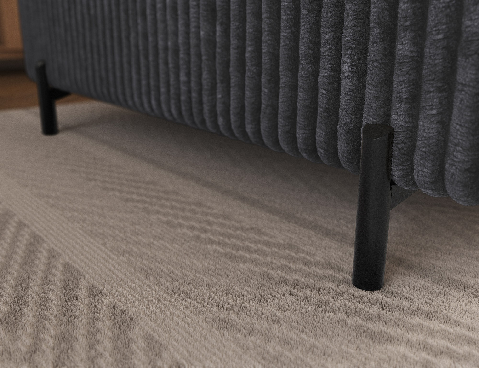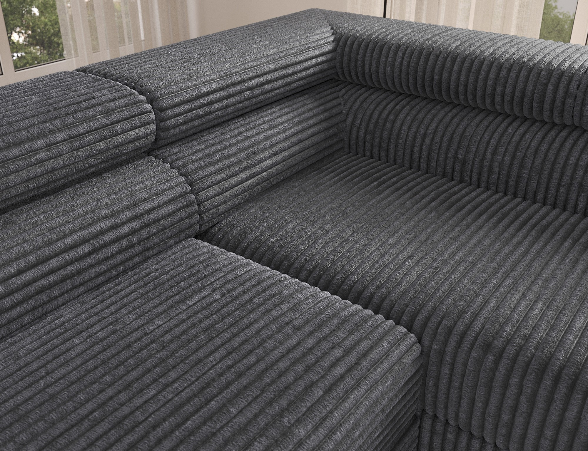 The Colesio corner sofa is a modern and elegant lounge piece with a distinctive, geometric form that perfectly combines design and functionality, making it an ideal addition to a spacious living room. The model, measuring 274 x 200 x 93 cm and weighing 144.5 kg, stands out with its solid construction and carefully refined details that ensure high comfort for everyday use. The seat is equipped with a B-type wave spring and a combination of T3030 foam (6 cm) and HR3030 foam (4 cm), guaranteeing optimal elasticity, resistance to deformation, and comfort even during intensive use. The backrest, filled with profiled T2130 polyurethane foam approximately 8 cm thick, provides stable and ergonomic back support. The Colesio corner sofa features a practical sleeping function with a surface of 124 x 203 cm, and the Delfin mechanism allows for quick and convenient unfolding. An additional advantage is the spacious bedding container measuring 180 × 92 × 17 cm, which facilitates textile storage, making the Colesio corner sofa an excellent choice for those seeking a modern corner sofa with a sleeping function, bedding storage, and durable, comfortable filling for everyday relaxation.