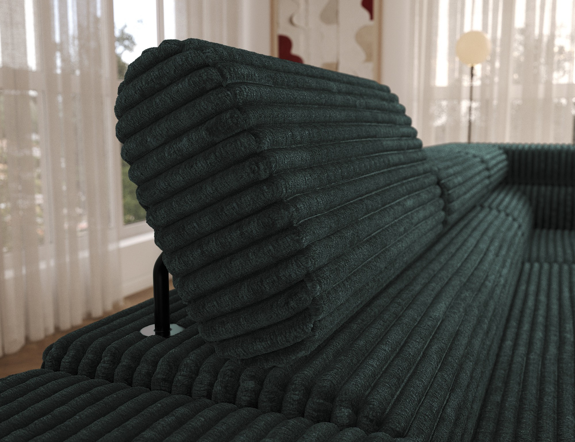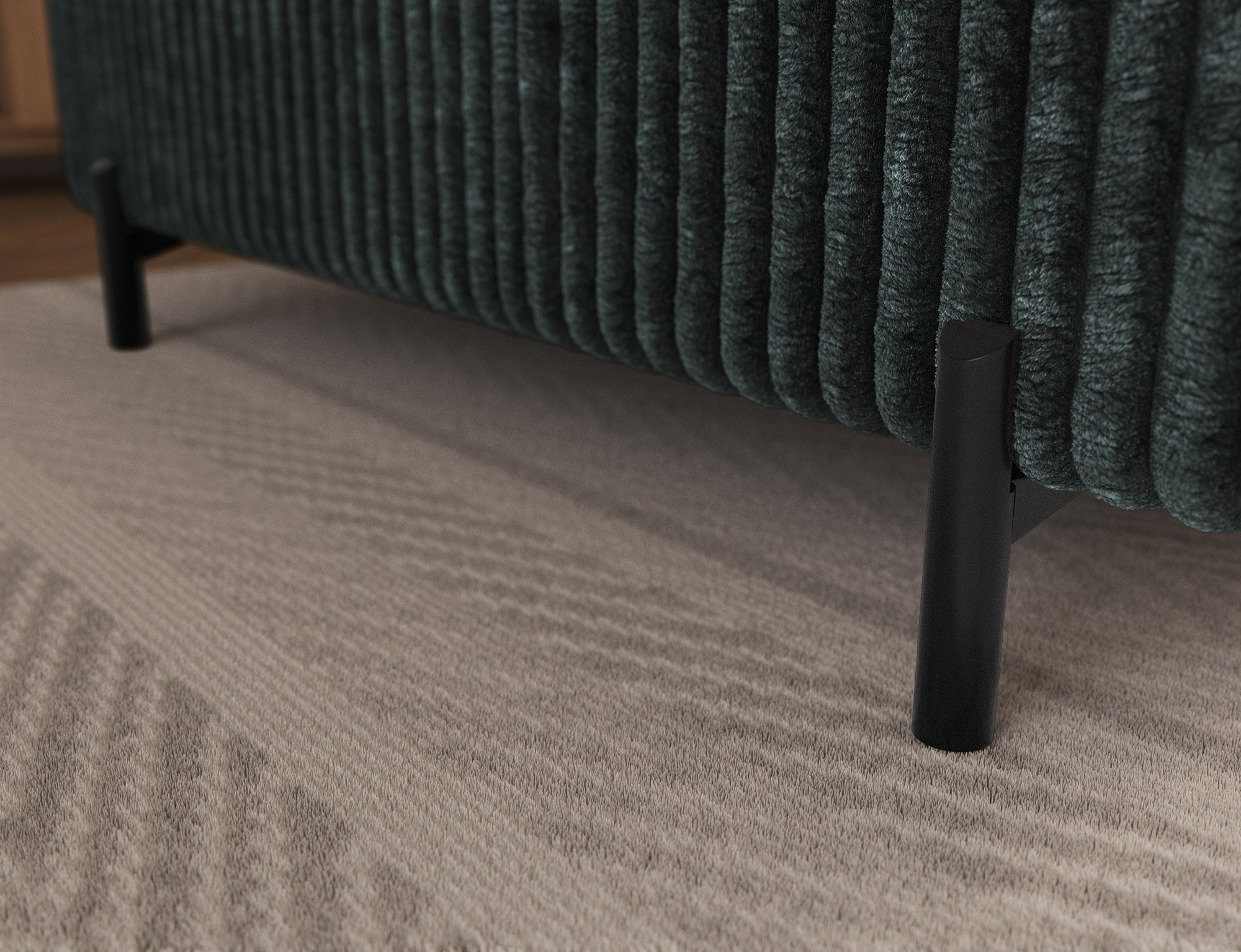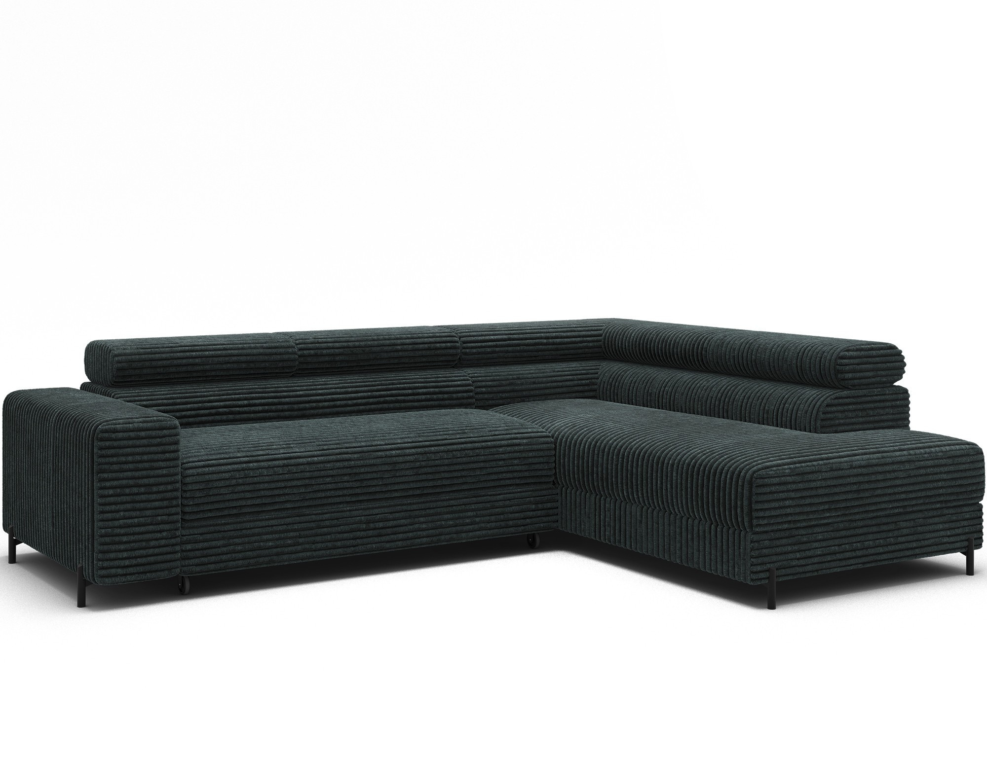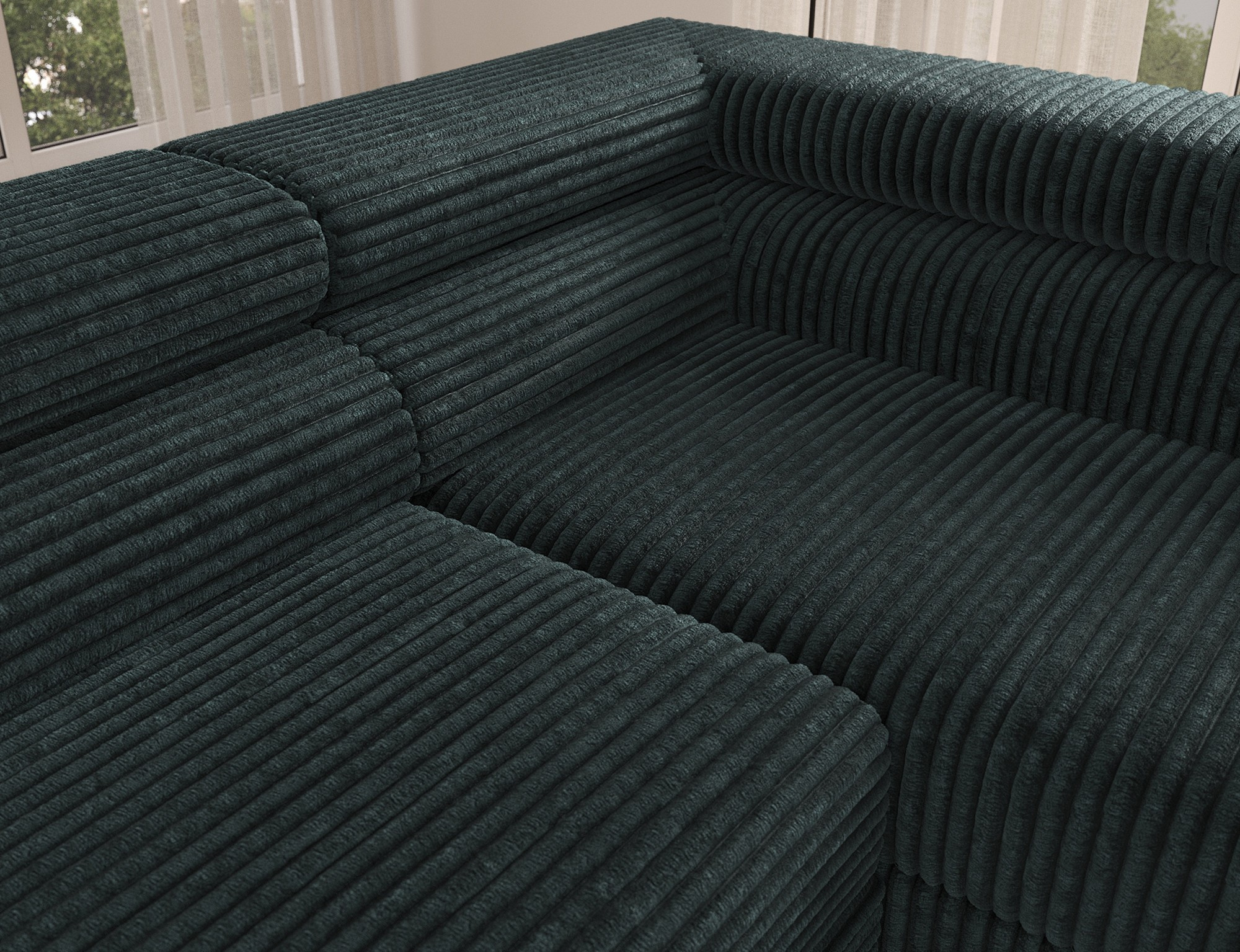 The Colesio corner sofa is a modern and elegant lounge piece with a distinctive, geometric form that perfectly combines design and functionality, making it an ideal addition to a spacious living room. The model, measuring 274 x 200 x 93 cm and weighing 144.5 kg, stands out with its solid construction and carefully refined details that ensure high comfort for everyday use. The seat is equipped with a B-type wave spring and a combination of T3030 foam (6 cm) and HR3030 foam (4 cm), guaranteeing optimal elasticity, resistance to deformation, and comfort even during intensive use. The backrest, filled with profiled T2130 polyurethane foam approximately 8 cm thick, provides stable and ergonomic back support. The Colesio corner sofa features a practical sleeping function with a surface of 124 x 203 cm, and the Delfin mechanism allows for quick and convenient unfolding. An additional advantage is the spacious bedding container measuring 180 × 92 × 17 cm, which facilitates textile storage, making the Colesio corner sofa an excellent choice for those seeking a modern corner sofa with a sleeping function, bedding storage, and durable, comfortable filling for everyday relaxation.
