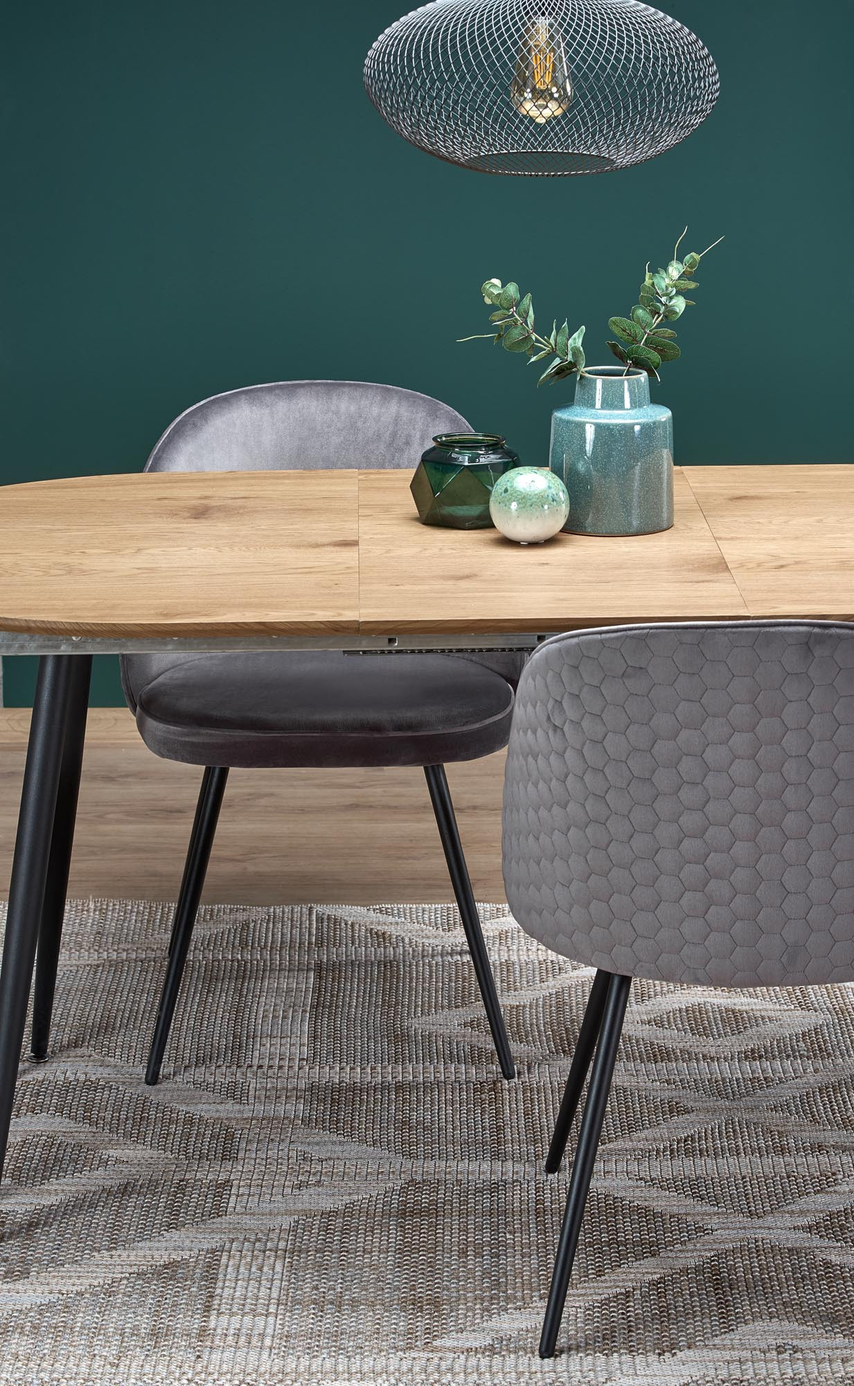rozměry: 120-160/80/74 cm, skládací stůl, materiál: MDF dýha / práškově lakovaná ocel, barva: deska stolu - zlatý dub, nohy - černé