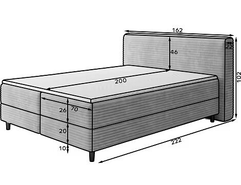 Čalouněná postel boxspring CORTIKO je ideální volbou pro ty, kteří hledají stylovou a funkční postel, která nabízí nejen pohodlí, ale i praktické řešení pro úložný prostor. Přineste do své ložnice kousek luxusu a užijte si každou noc v maximálním pohodlí.