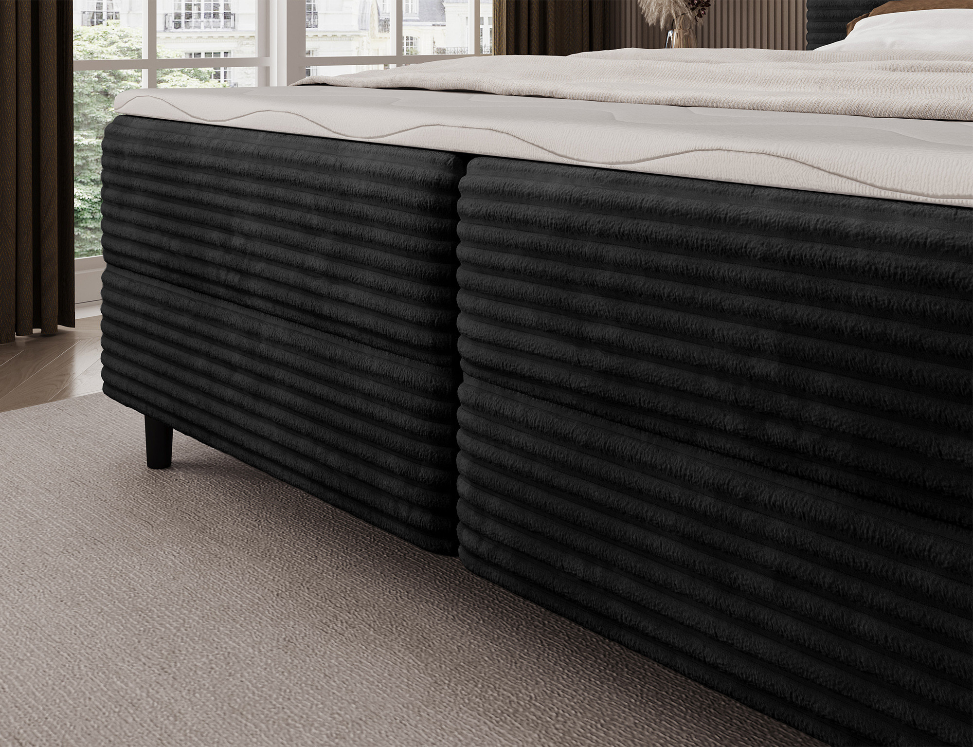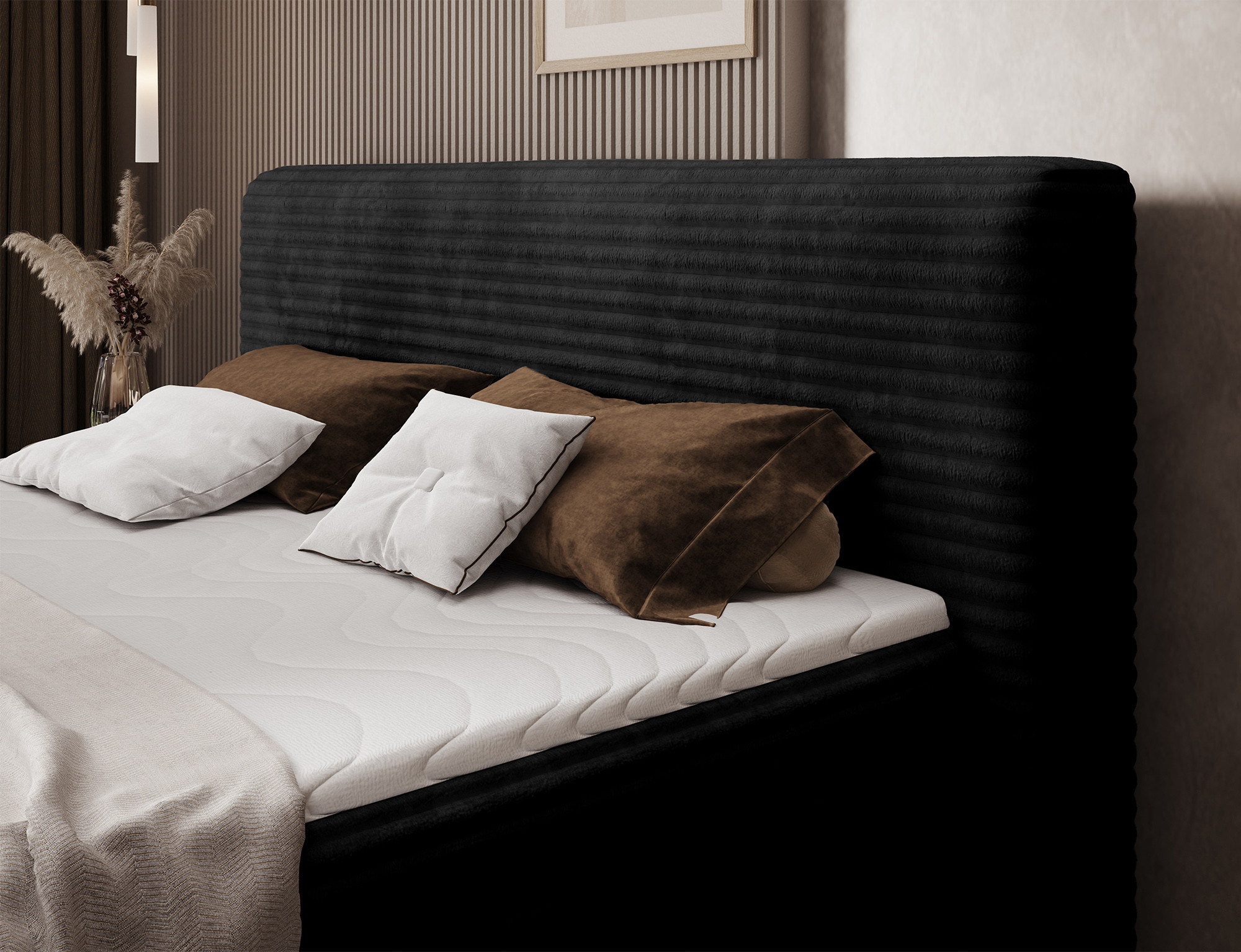 Kontinentální postel Cortiko je elegantní a pohodlnou volbou pro milovníky moderního stylu. Dostupné ve třech velikostních variantách: 140x200 cm, 160x200 cm a 180x200 cm, umožňuje dokonale přizpůsobit šířku vašim potřebám – 162 cm, 182 cm nebo 202 cm. Celková výška postele je 102 cm a hloubka je 222 cm, což dává konstrukci stabilní a vyvážený vzhled. Uvnitř kombinace Bonellových pružin a pěny T2540 zajišťuje vynikající podporu těla a vysoký spací komfort. Model Cortiko je vybaven praktickým úložným prostorem na lůžkoviny, který vám umožní udržet ložnici uklizenou a maximálně využít váš prostor. Design je doplněn černými dřevěnými nohami nábytku, které přidávají eleganci a lehkost. Se svým moderním designem postel Cortiko dokonale doplňuje jak minimalistické, tak výraznější interiéry a slouží jako stylový a funkční středobod každé ložnice.