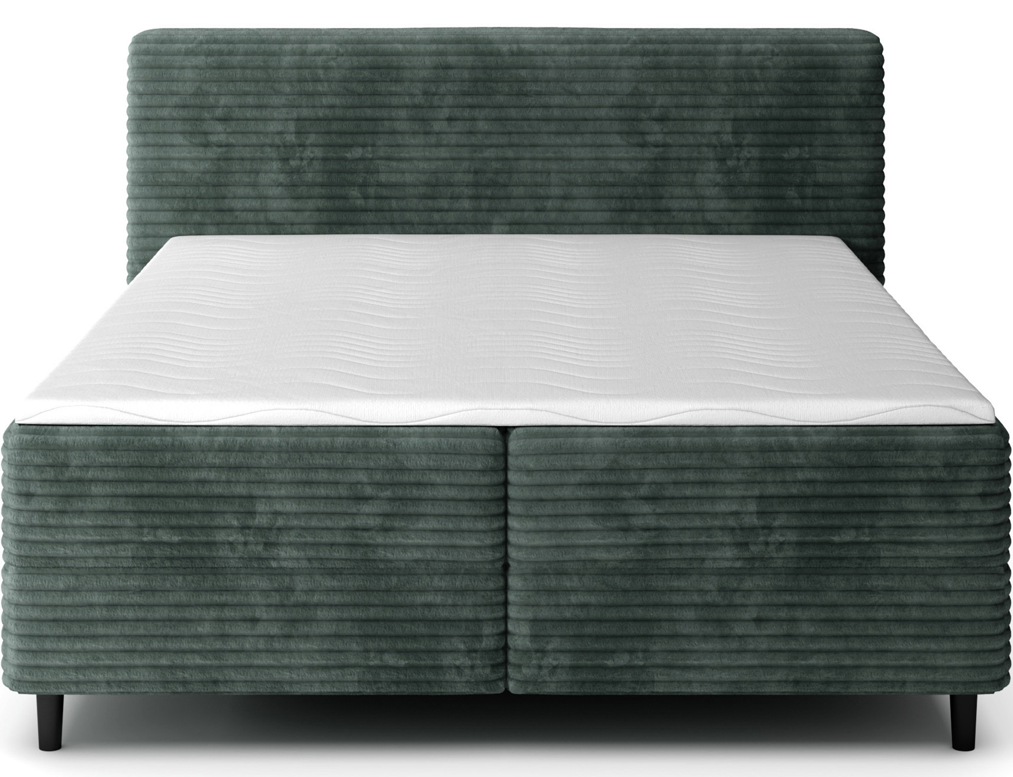 Kontinentální postel Cortiko je elegantní a pohodlnou volbou pro milovníky moderního stylu. Dostupné ve třech velikostních variantách: 140x200 cm, 160x200 cm a 180x200 cm, umožňuje dokonale přizpůsobit šířku vašim potřebám – 162 cm, 182 cm nebo 202 cm. Celková výška postele je 102 cm a hloubka je 222 cm, což dává konstrukci stabilní a vyvážený vzhled. Uvnitř kombinace Bonellových pružin a pěny T2540 zajišťuje vynikající podporu těla a vysoký spací komfort. Model Cortiko je vybaven praktickým úložným prostorem na lůžkoviny, který vám umožní udržet ložnici uklizenou a maximálně využít váš prostor. Design je doplněn černými dřevěnými nohami nábytku, které přidávají eleganci a lehkost. Se svým moderním designem postel Cortiko dokonale doplňuje jak minimalistické, tak výraznější interiéry a slouží jako stylový a funkční středobod každé ložnice.