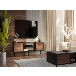 CORTINA TV skříňka 180 EF černá/ořech (1 ks)=1 str. ), s možností instalace krbu - zakoupeného samostatně