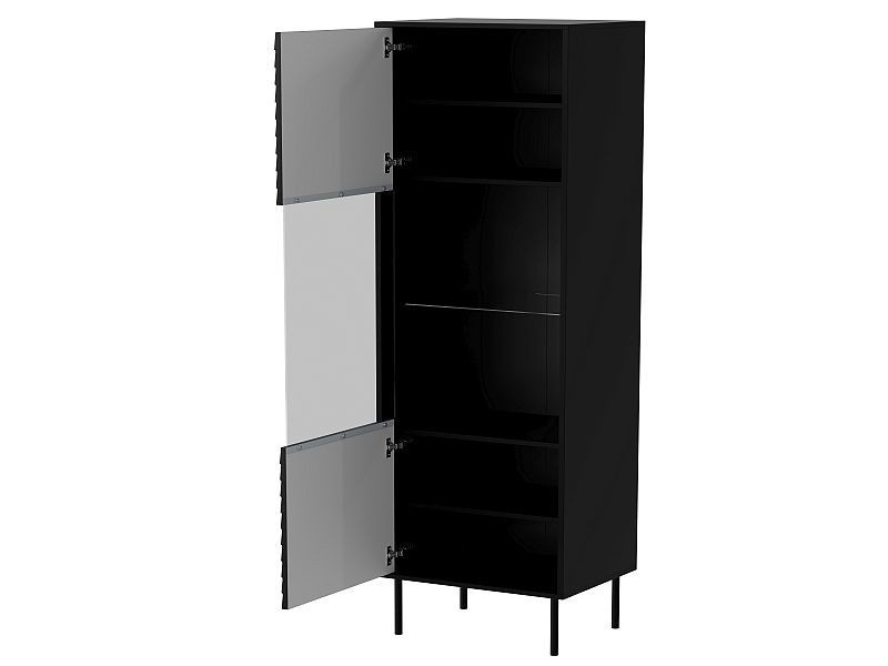 CORTINA vitrína rozměry: V/Š/H - 182cm/53cm/40cm materiál: korpus: dřevotřísková deska 16mm čela: MDF deska 18mm Nohy: kovové (černé), výška 20 cm Úchyt: systém PUSH TO OPEN