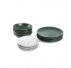 Sada obsahuje: 6 talířů na večeři, 27.3 cm v průměru, 6 salátových talířů, 19.6 cm v průměru, 6 polévkových talířů, 20 cm v průměru.