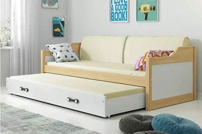 Dětská postel DAVID s matracemi, 90x200 cm, Přírodní/Bílá