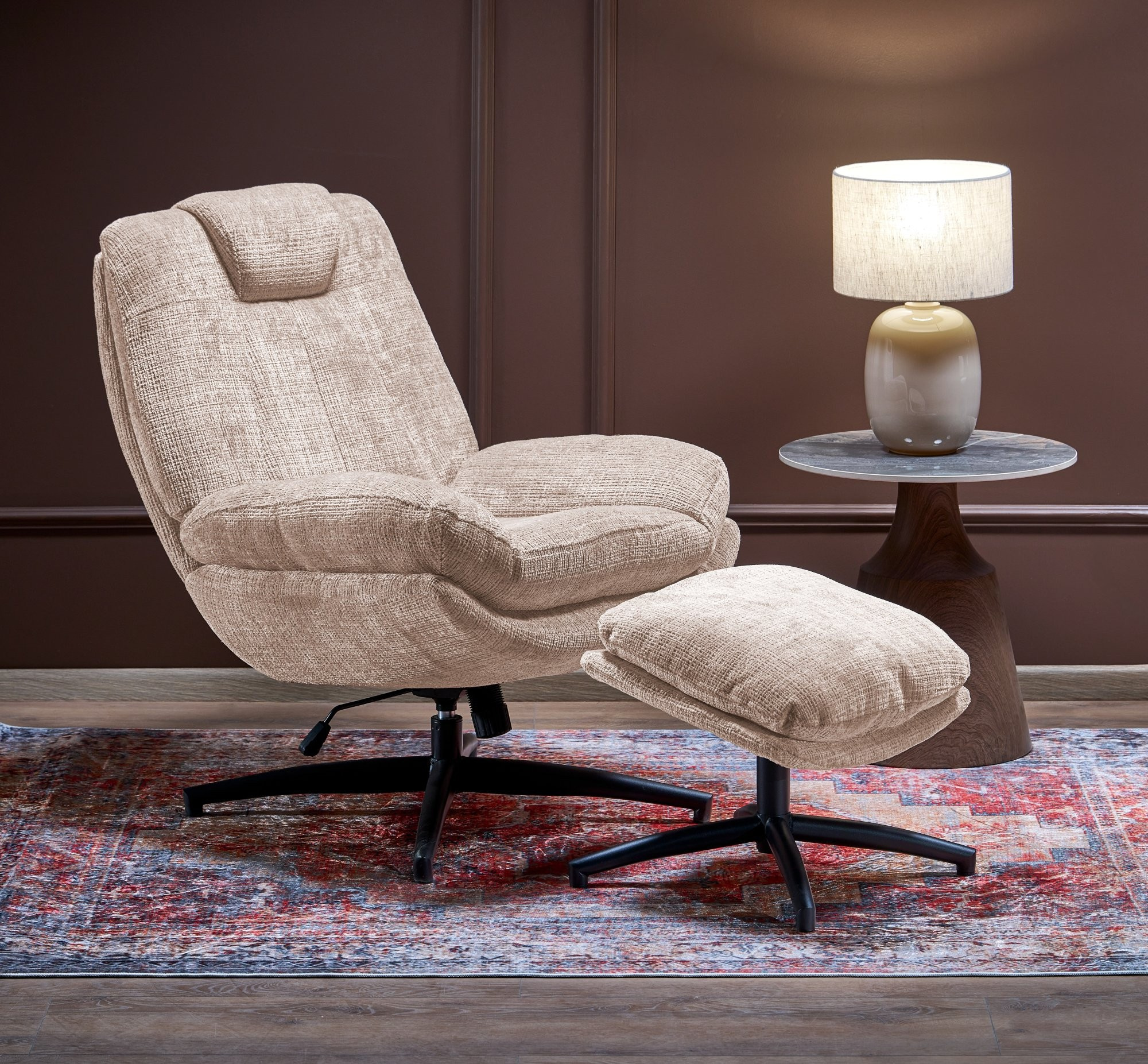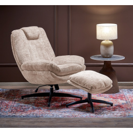 rozměry: 75/90/100/50 cm a 50/40/44 cm, křeslo s podnožkou / funkce houpání / funkce otáčení, materiál: látka CREMONA / ocel s práškovým nástřikem, barva: béžová #14