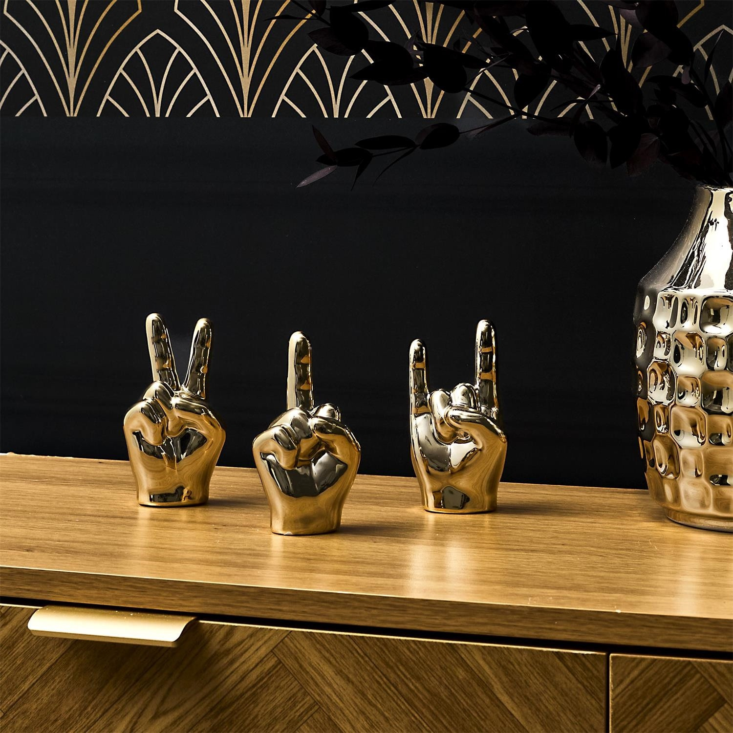 Dekorativní keramická figurka ve tvaru ruky je moderní lesklá ozdoba, která přidá trochu šílenství do interiéru. Figurka je dostupná ve 3 vzorech a 2 velikostech. Lze je spojovat a vytvářet koláž z rukou.