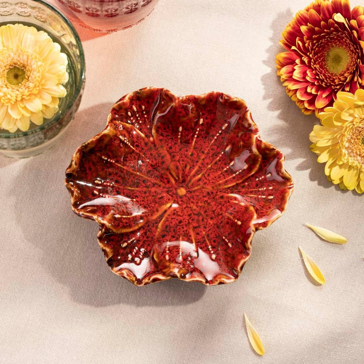 Dodejte svému interiéru nádech umělecké elegance s dekorativním podnosem EDME. Jeho přírodou inspirovaný, květinový tvar v kombinaci s intenzivní červenou glazurou vytváří jedinečnou dekoraci.
