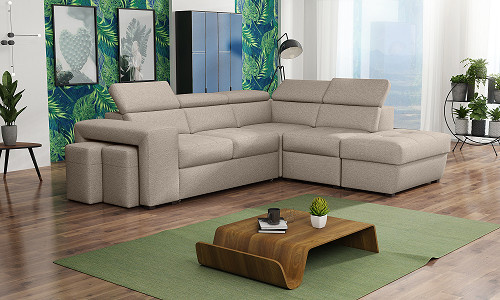 DENTON - Pravá sedací souprava ,látka béžová Metro11 (Positano bok+2xpufa+2F+rog+1+otm)(MR) - kolekce "MR"(K250)