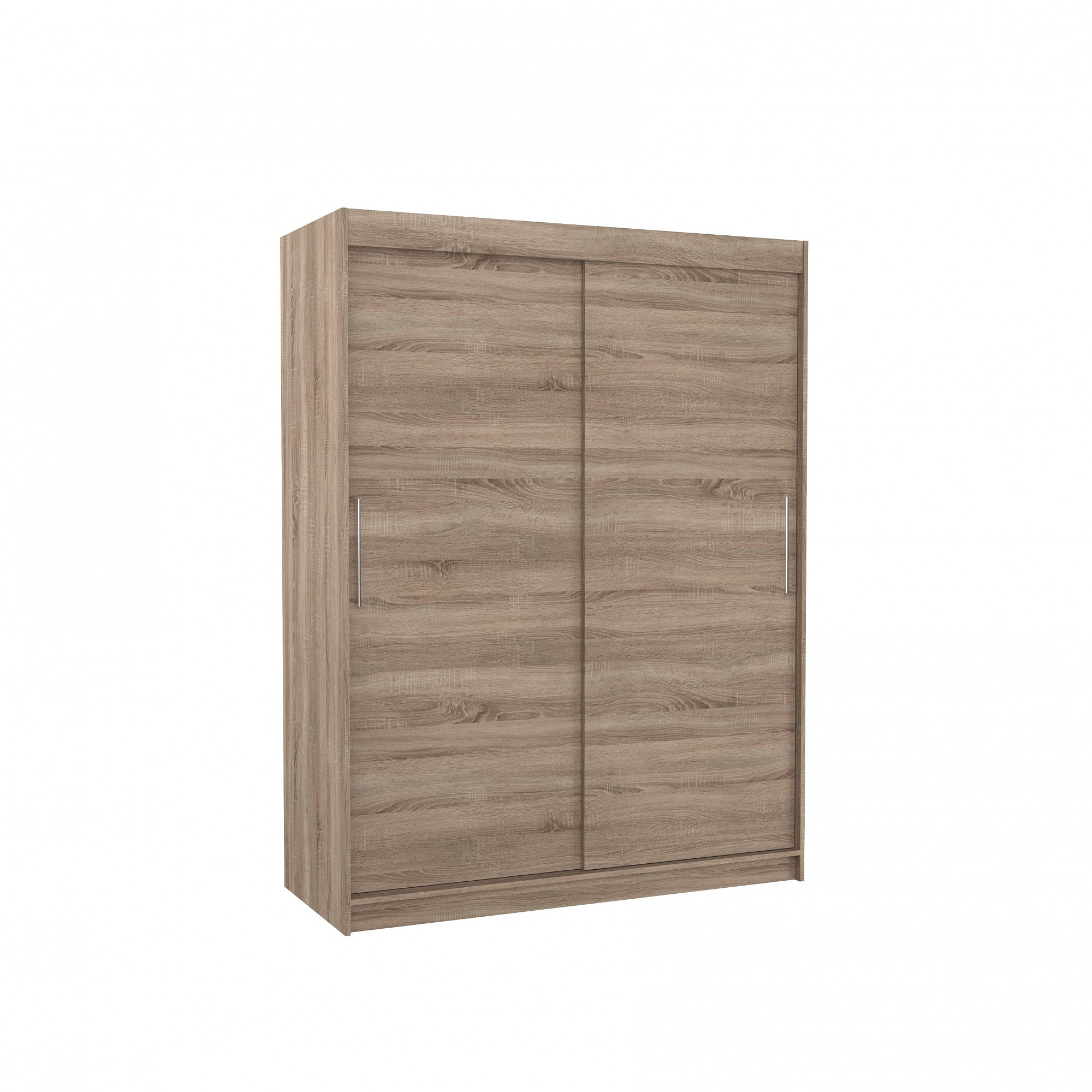 Šatní skříň s posuvnými dveřmi DENVR je ideálním způsobem, jak uspořádat prostor. Nábytek je vybaven prostornými policemi a tyčí, na kterou můžete pověsit šaty, obleky, svrchní oděvy nebo košile. Díky tomu, že skříň je posuvná, nemusíte vyčleňovat další místo na otevření dveří, což z ní činí ideální řešení pro malý pokoj nebo úzkou předsíň.
