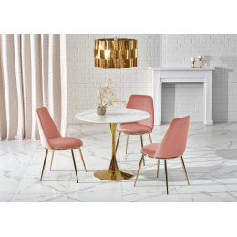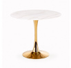 rozměry: fi90/75 cm, materiál: sklo / chromovaná ocel, barva: horní deska - bílý mramor, noha - zlatá