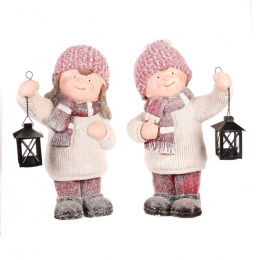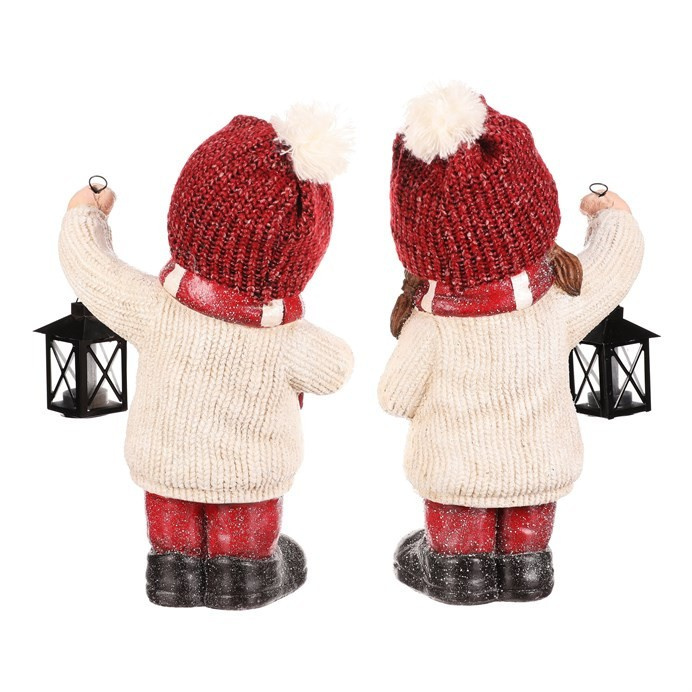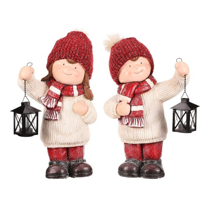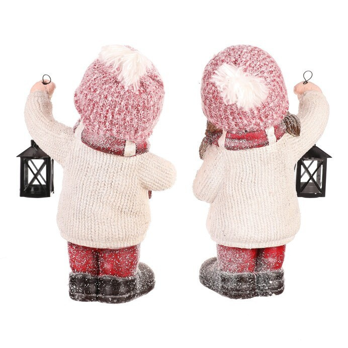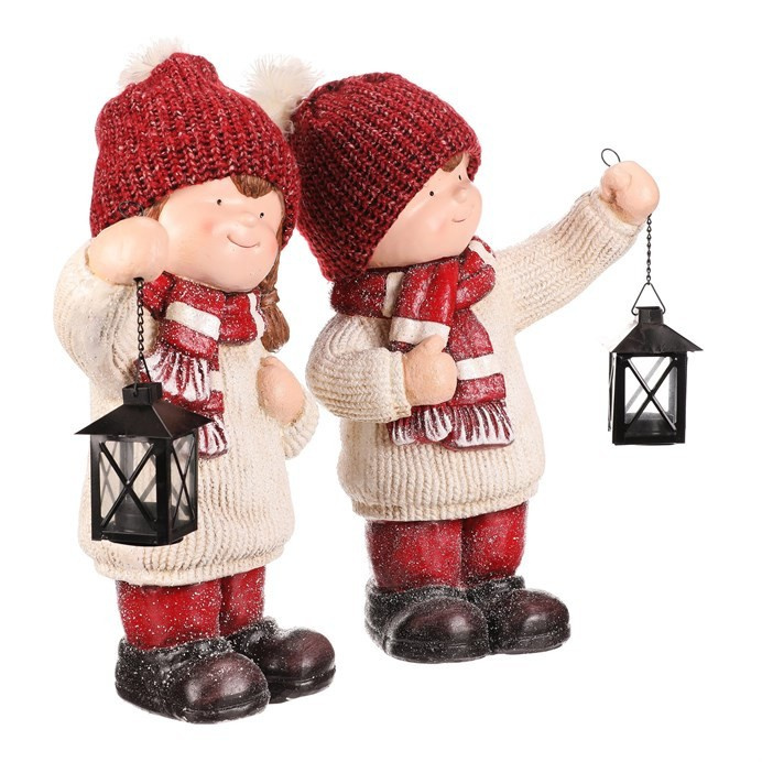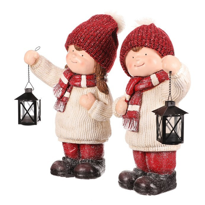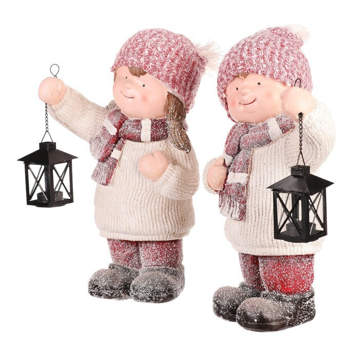 Roztomilá dekorační soška chlapce nebo dívky z magnesia v zimním oblečení přinese do vašeho domova kouzlo zasněžených vánočních svátků. Teplé čepice, šály a úsměvy na tvářích, jim dodávají veselý, hřejivý a sváteční vzhled. Krásná zimní dekorace, která potěší malé i velké a skvěle doplní vánoční výzdobu. Lucerny, které drží, jsou uzpůsobené pro vložení čajové svíčky. Jedná se tedy o mix dvou druhů sošek, přičemž cena je uvedena za 1 kus.
