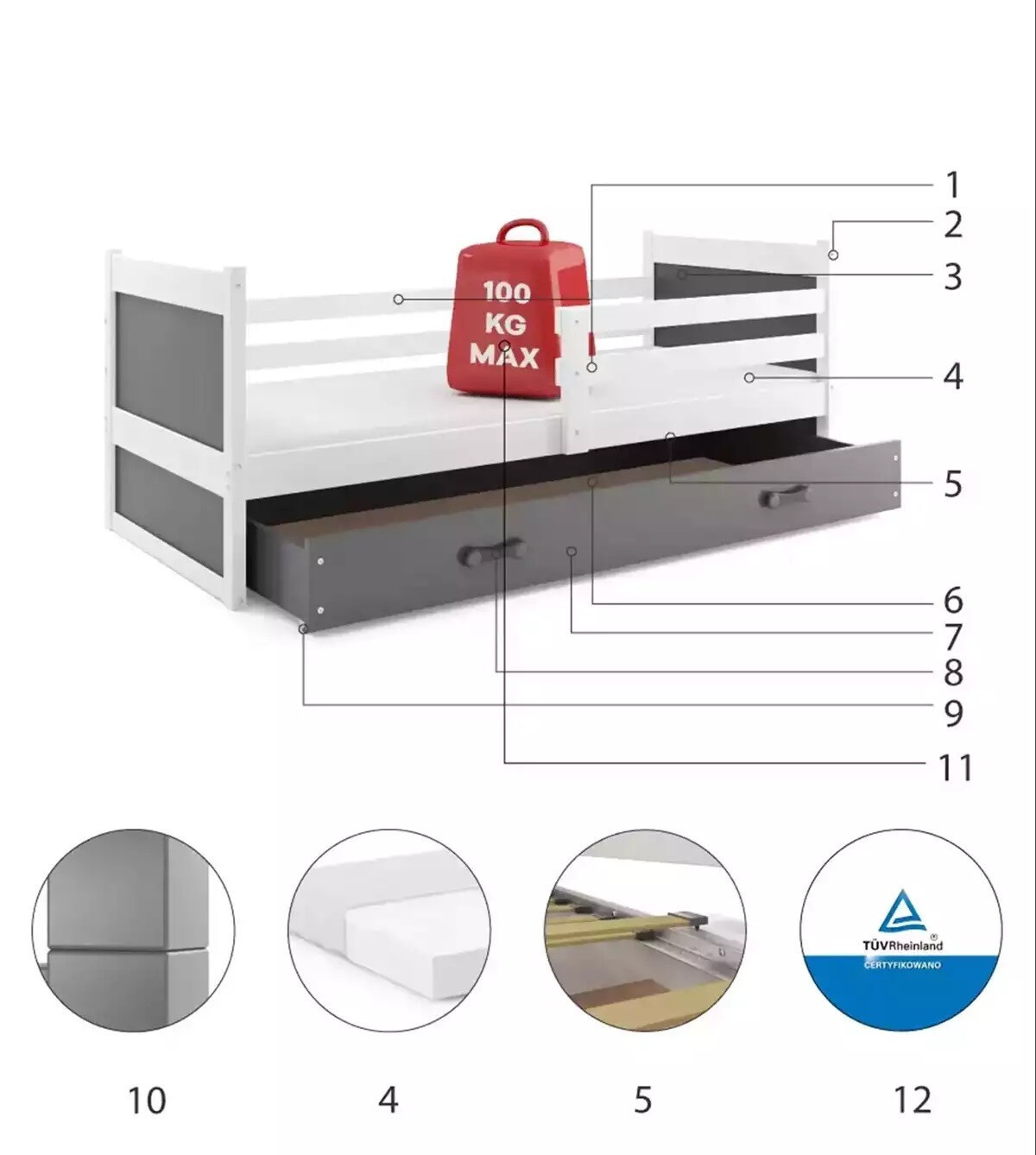 - Certifikovaná postel - kvalita a bezpečnost v souladu s normami TUV.