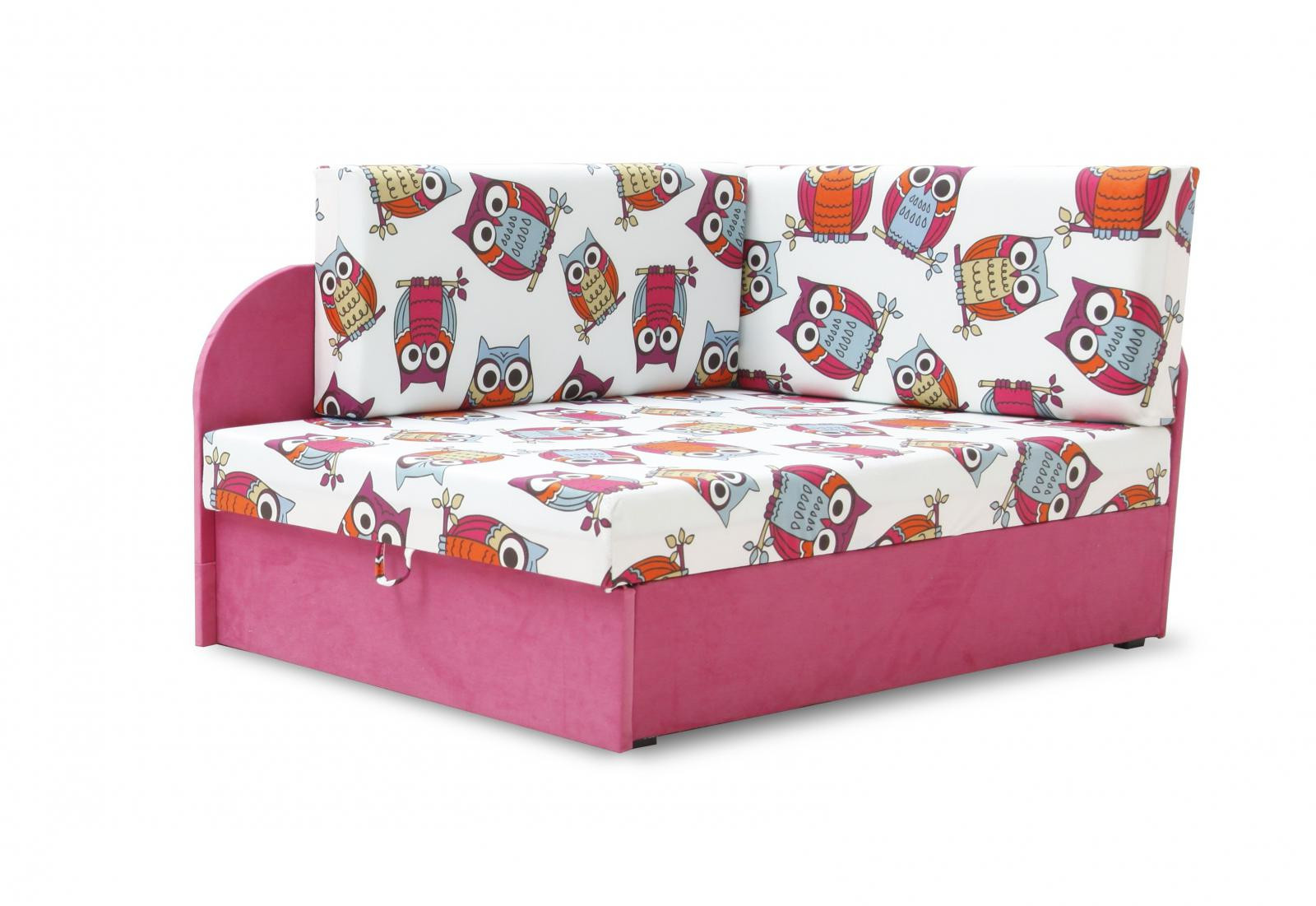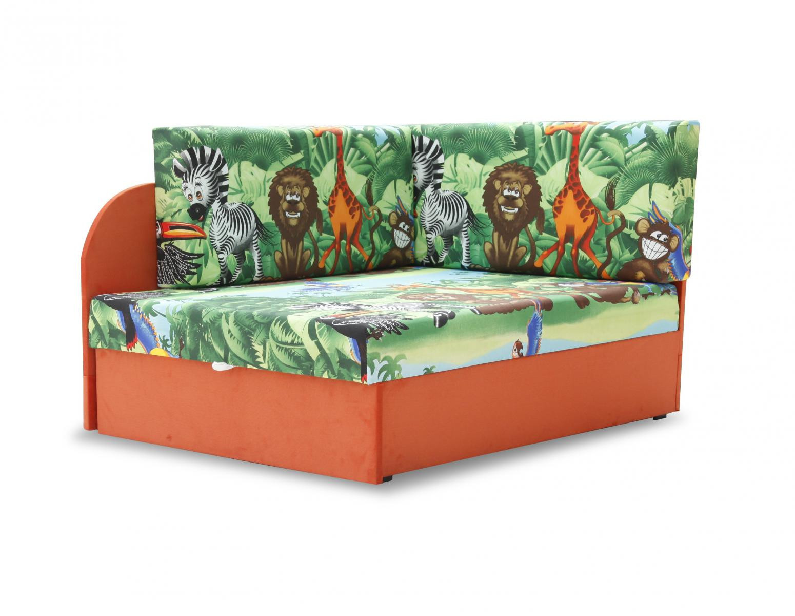 Dětská pohovka Matýsek je velmi praktická, funkční, variabilní a hodí se do každého dětského pokoje nebo hracího koutku. Může sloužit na spaní, odpočívání, hraní, nebo k přespání kamaráda či kamarádky. Velkou výhodou dětské pohovky jsou rozměry. Zaberou v pokoji mnohem méně místa, než klasická postel, nebo pohovka. Pohovku je možno rozložit na dva rozměry: 75x137 a 75x170 cm. Samorřejmostí je také nepostradatelný úložný prostor. Pohovka je potažena látkou s veselým motivem zvířátek z pohádky Madagaskar. Pohovku nabízíme v levém i pravém provedení a také se vzorem princezen, nebo soviček. Pohovka je určena pro děti do 6-ti let.