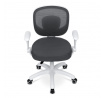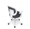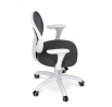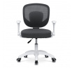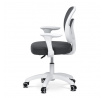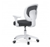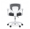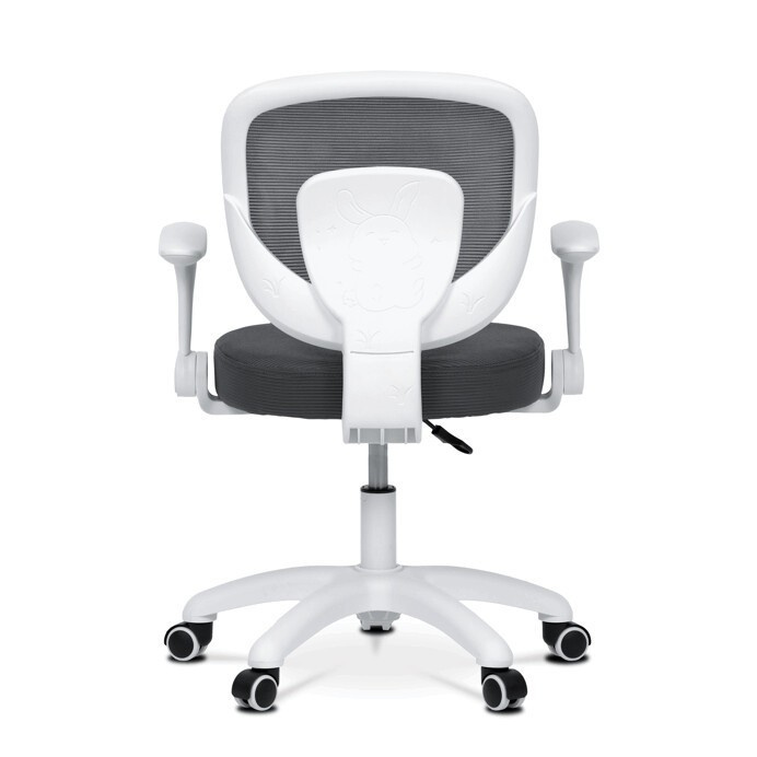 Dětská židle s šedým síťovinovým potahem nabízí prodyšné a pohodlné sezení vhodné pro mladší uživatele. Opěradlo je z lehké a pevné síťoviny, která podporuje cirkulaci vzduchu, zatímco sedák je čalouněný látkou stejné barvy pro příjemný komfort. Bílé plastové nohy s pěti rameny zajišťují stabilitu a jsou vybaveny kolečky určenými pro tvrdé podlahy, což umožňuje snadný pohyb bez poškození povrchu. Odklápěcí područky přispívají k flexibilitě používání a výškově nastavitelný mechanismus umožňuje přizpůsobení výšky sedáku podle potřeby dítěte. Židle je navržena tak, aby kombinovala funkčnost s jednoduchým designem vhodným do dětských pokojů.