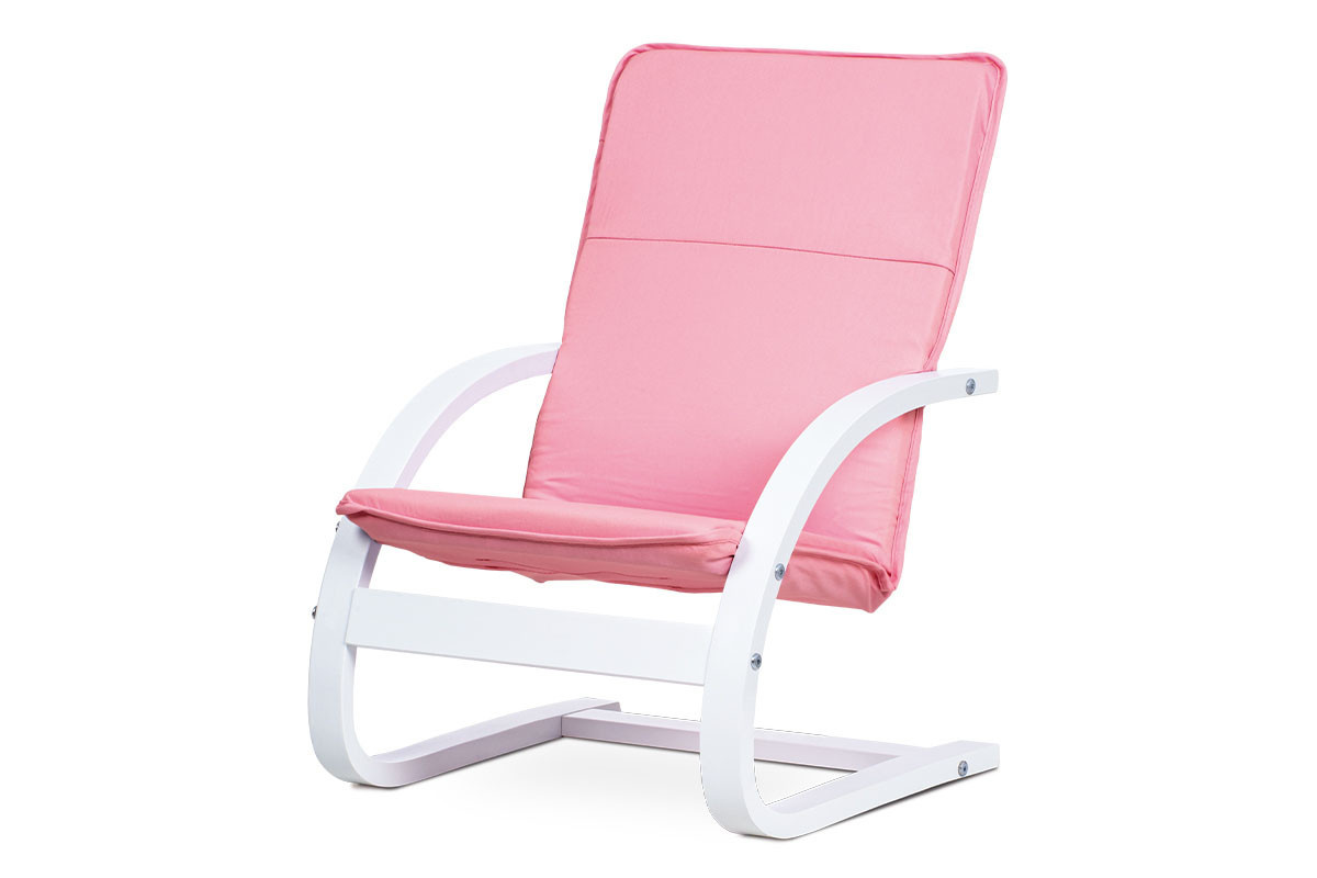 Dětské křesílko - starorůžová látka, buková překližka, bílý matný lak
