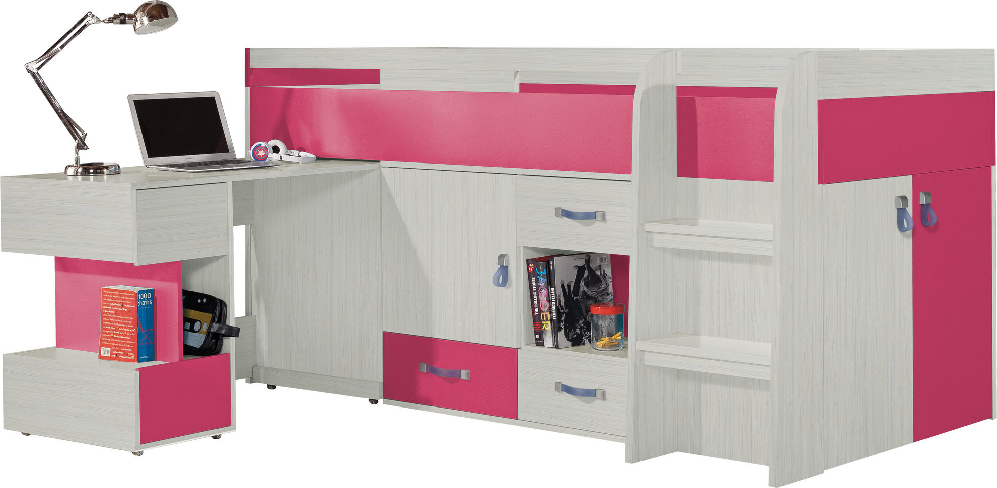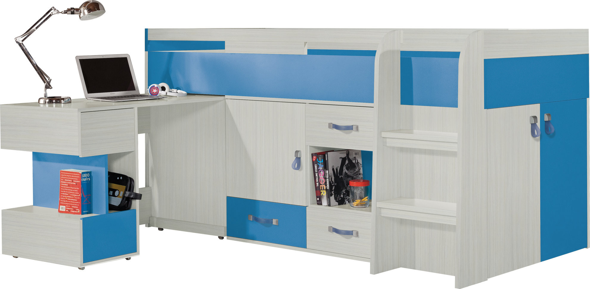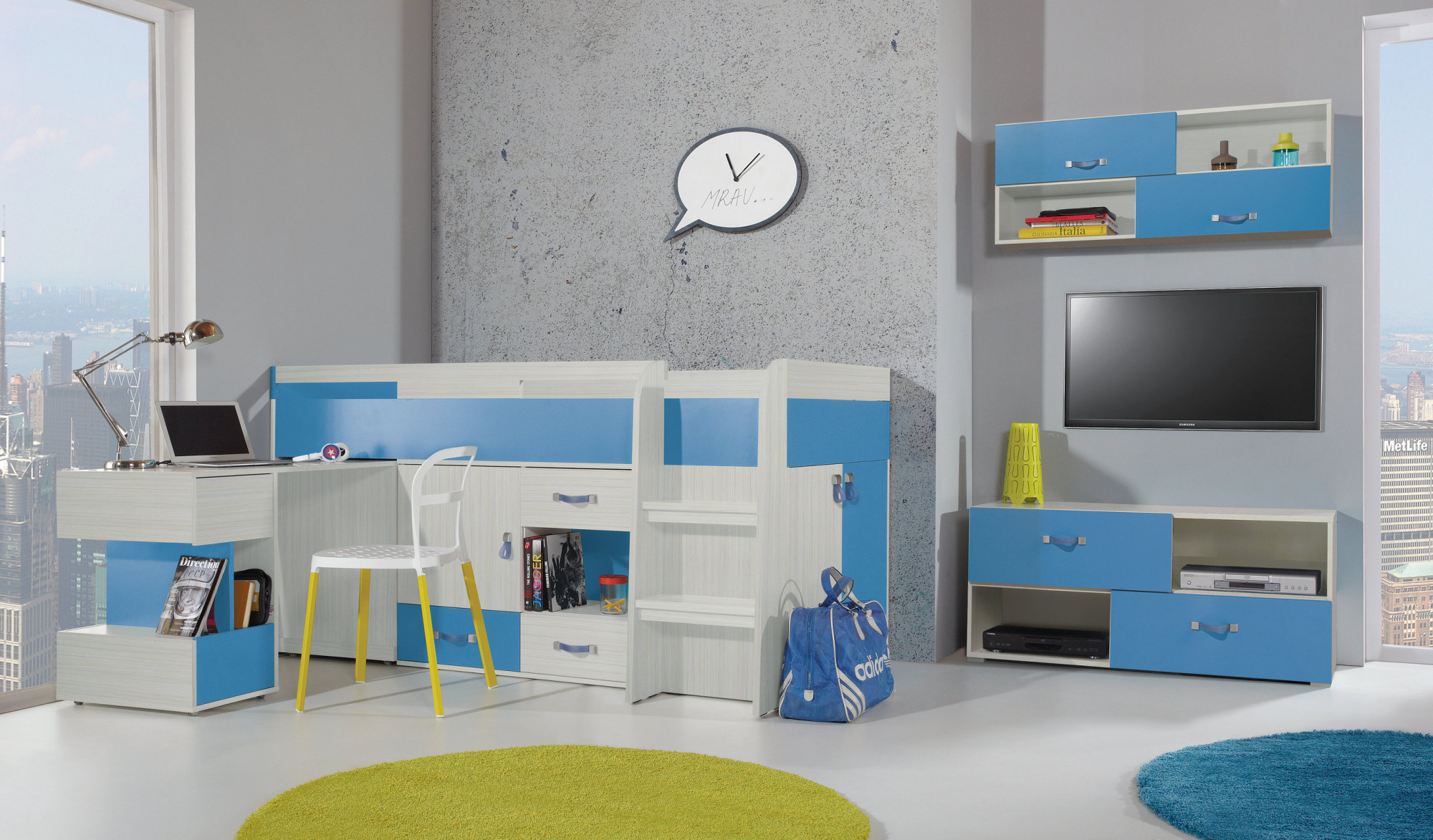 Postel Komi je vyrobena z lamina a zakončena je Abs lištou. Postel je určena pro 1 dítě. Součástí postele jsou úložné prostory a rošty. Matrace a dekorace nejsou v ceně postele zahrnuty.