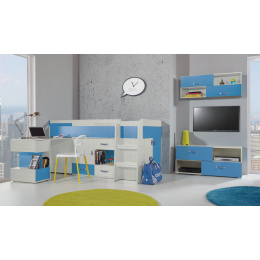 : Postel KM21 - 1x, Tv komoda KM10 - 1x, Police KM12 - 1x.