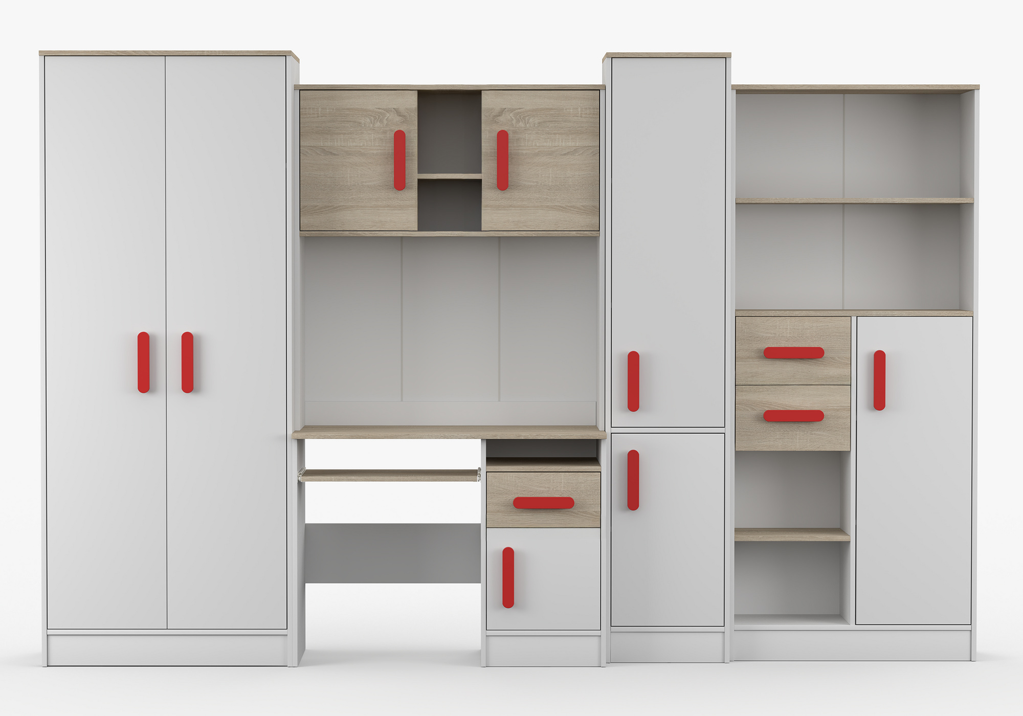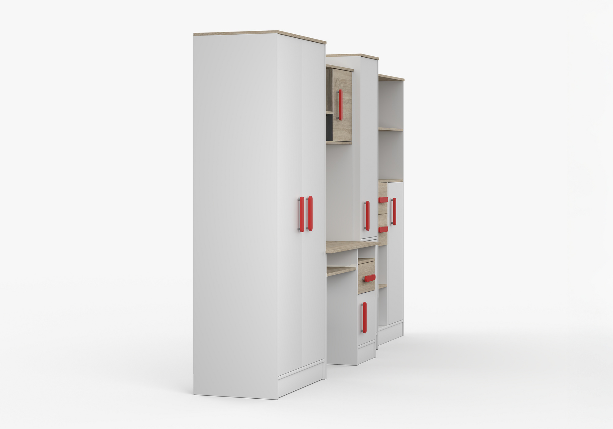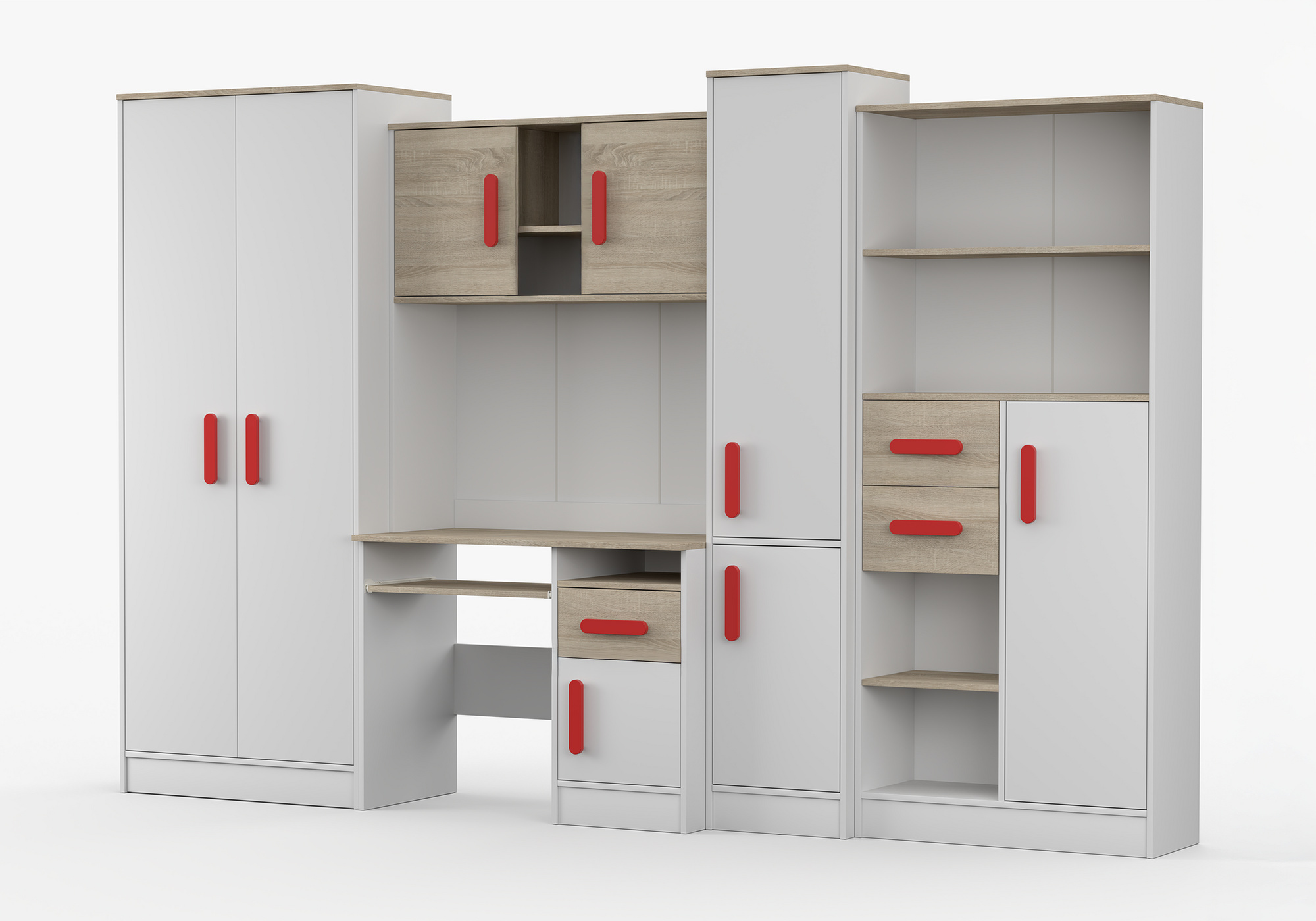 Dětský pokoj MACIUS, Bílá Mat/Dub Sonoma/Červená
