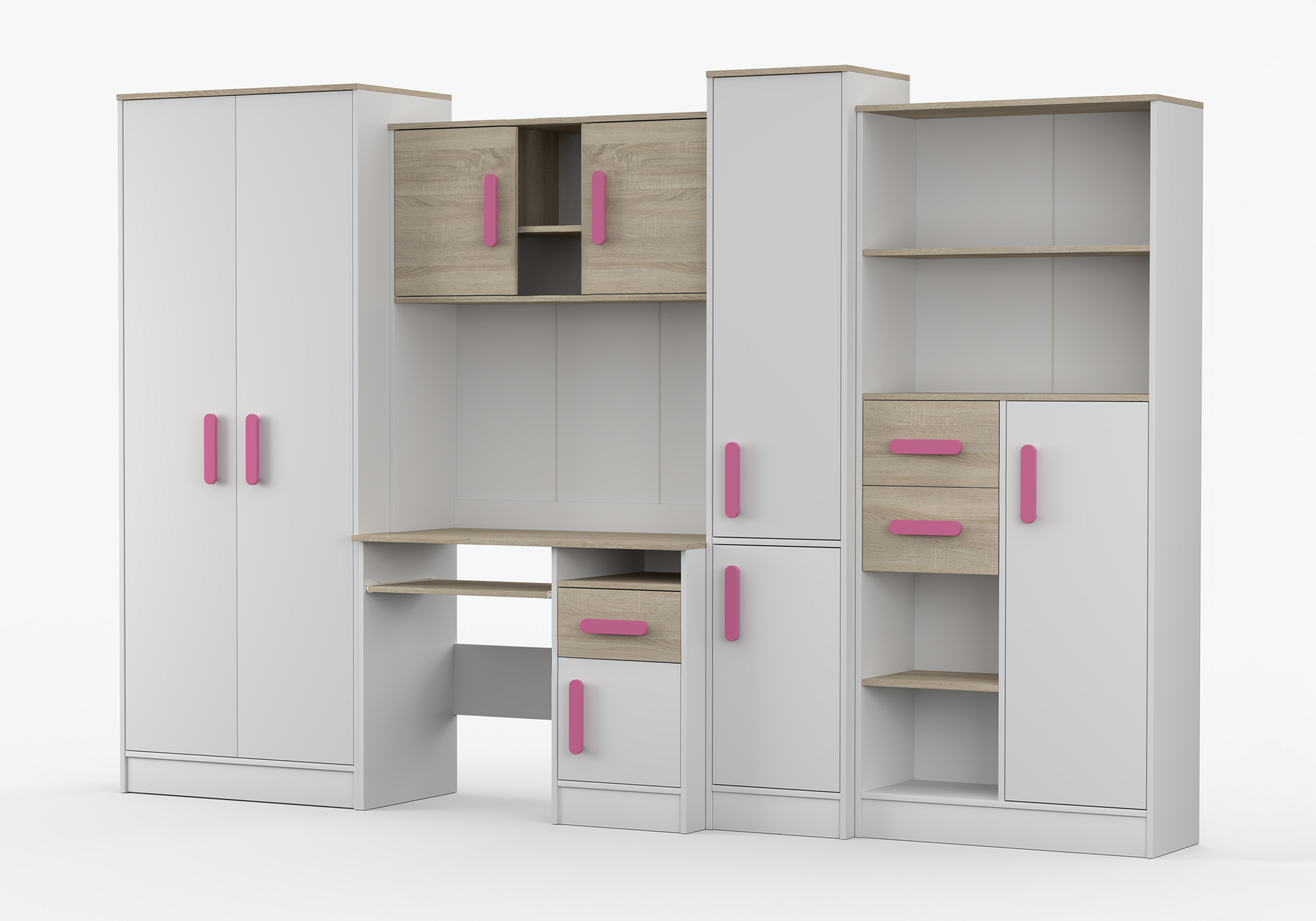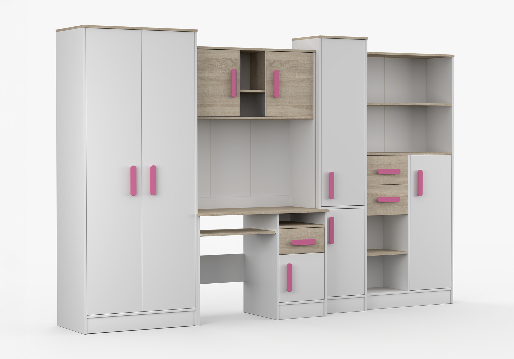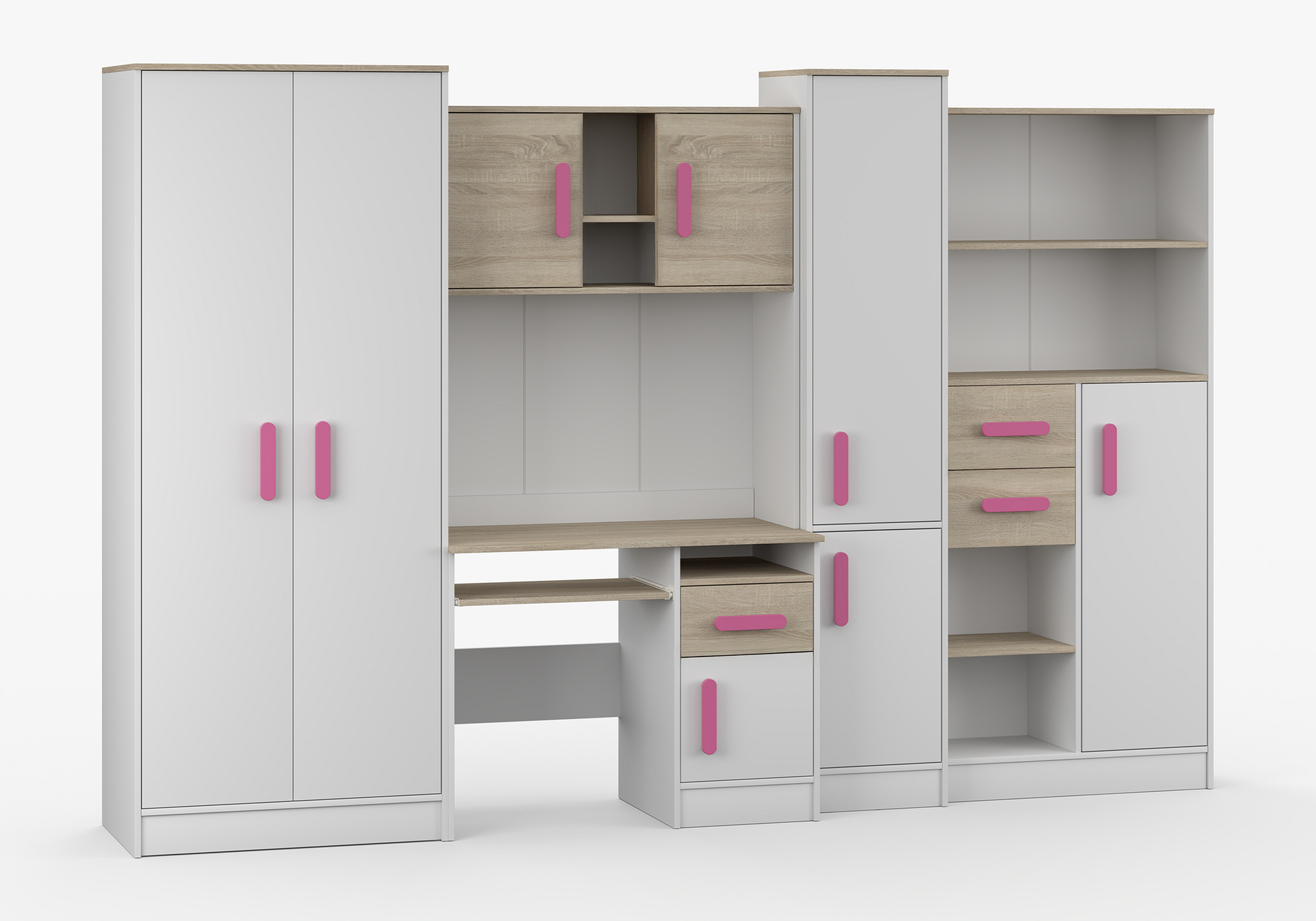 Dětský pokoj MACIUS, Bílá Mat/Dub Sonoma/Růžová