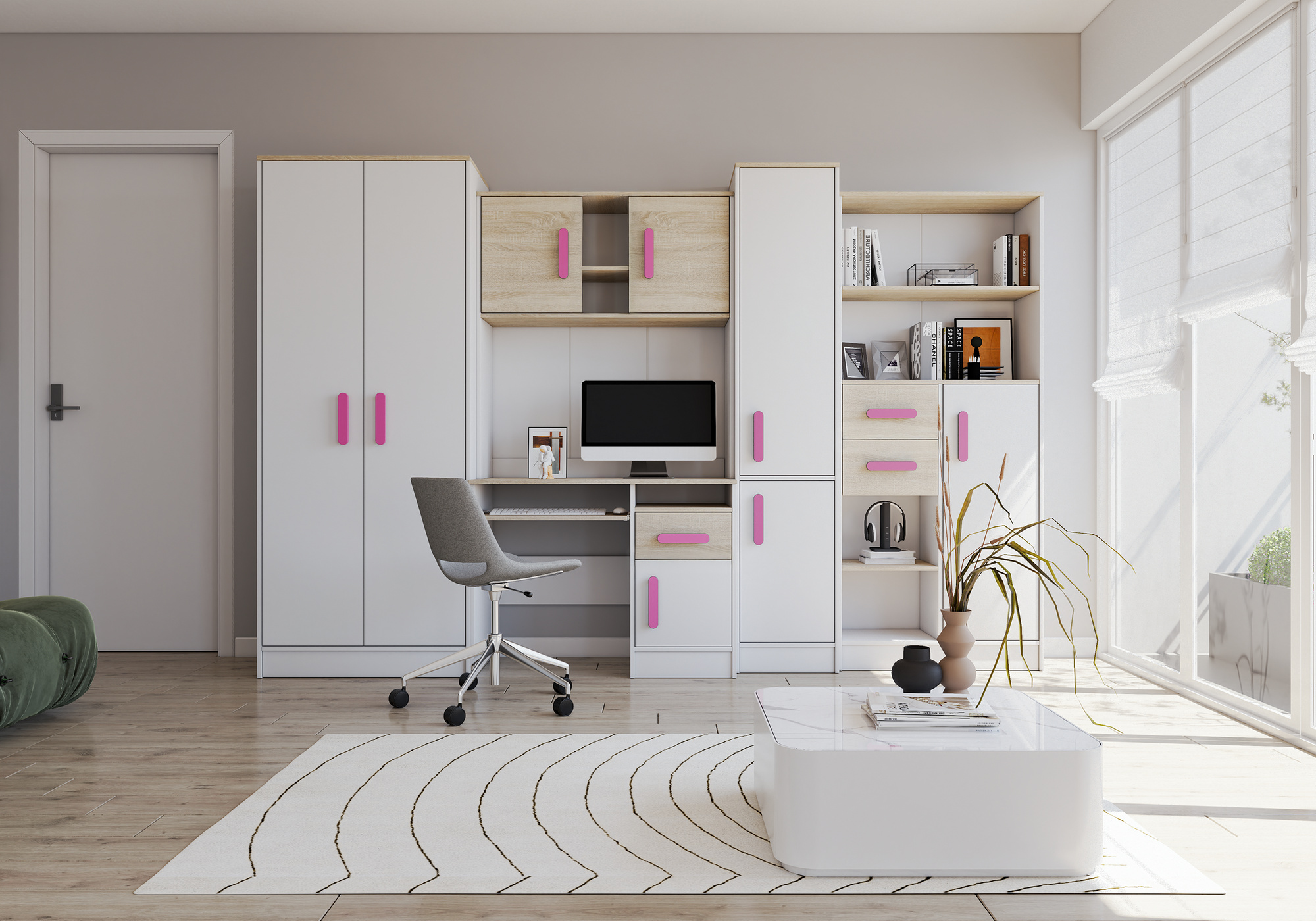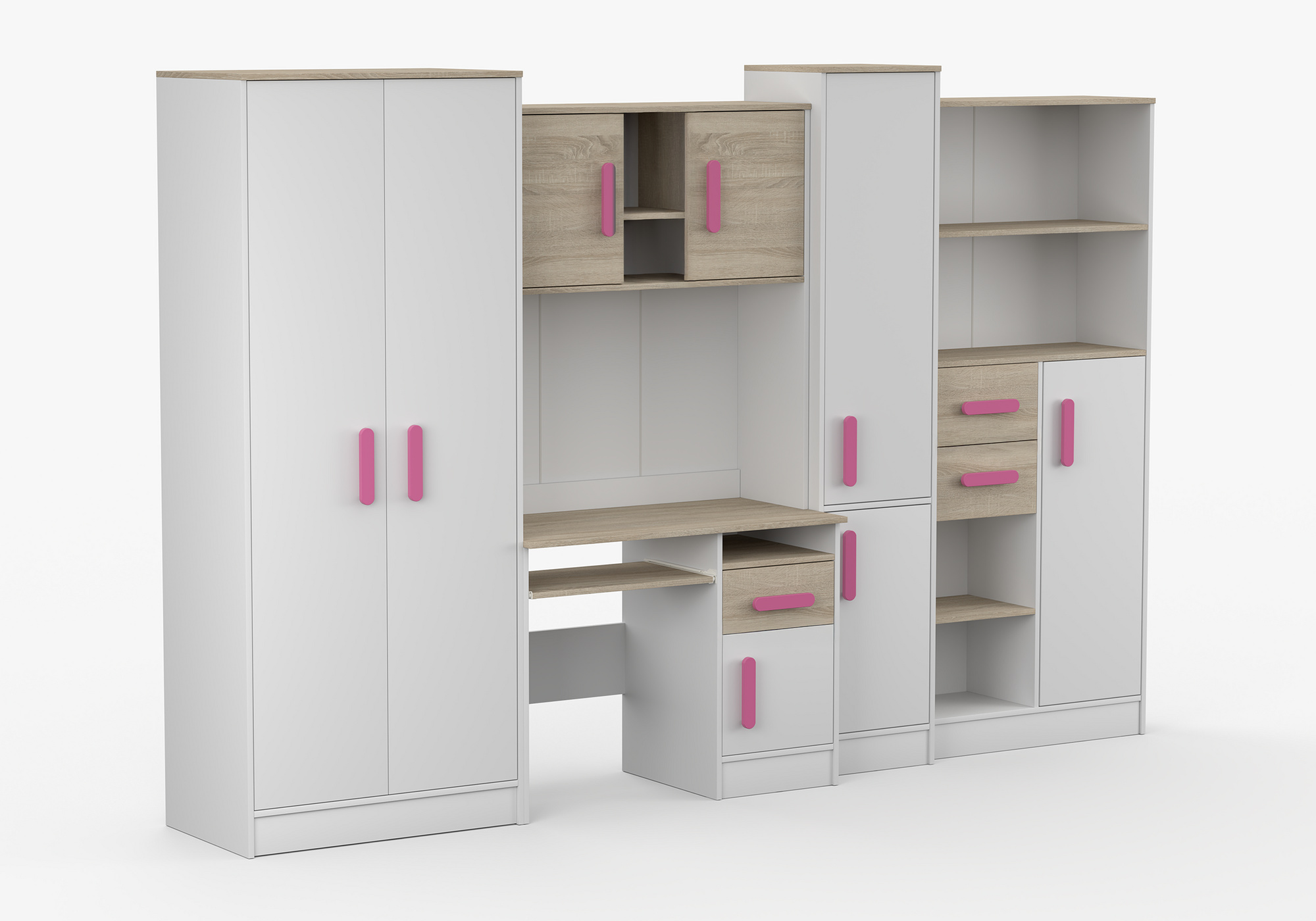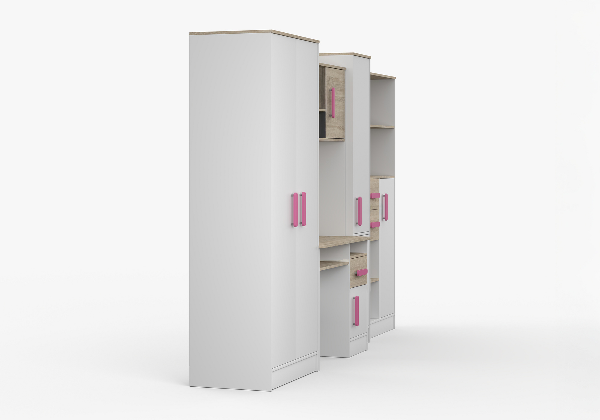Dětský pokoj MACIUS, Bílá Mat/Dub Sonoma/Růžová