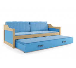Dětská patrová postel KUBUS 3 s přistýlkou 90x200 cm, včetně matrací, Přírodní/Modrá