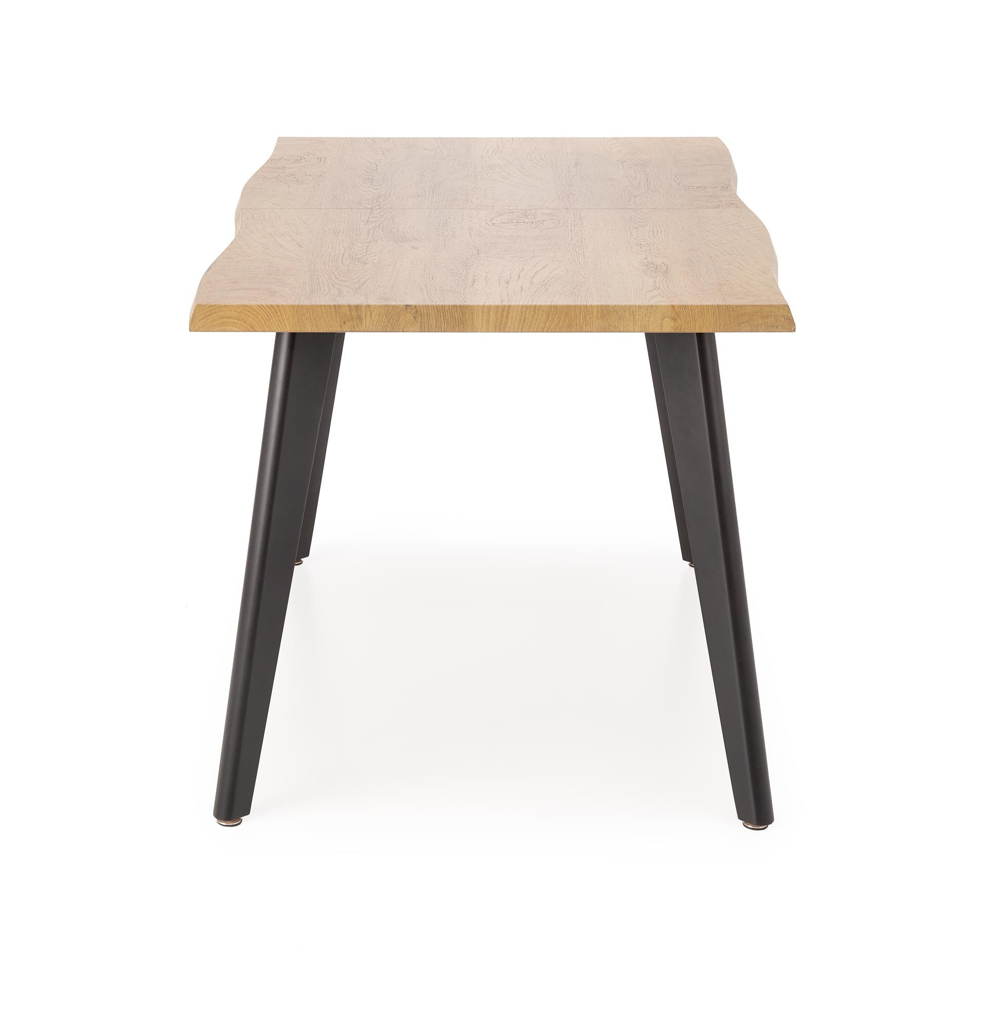 Stůl je vyroben z kvalitního dřeva, které zajišťuje jeho dlouhou životnost a odolnost. Přírodní povrchová úprava dodává stolu teplý a přívětivý vzhled, zatímco černé prvky přidávají moderní nádech. Tento kontrast vytváří jedinečný design, který zaujme na první pohled.